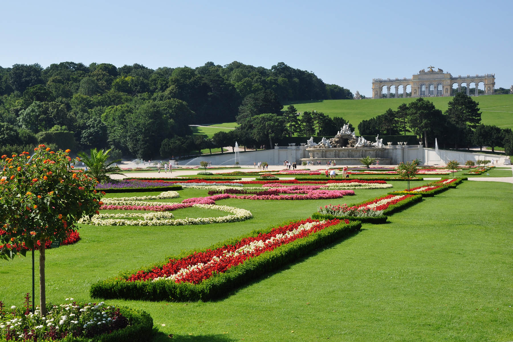 Tambien conocidos como el Versailles Vienés, por sus dimensiones y el estilo francés, los jardines de Schonbrunn destacan por los numerosos parterres de flores y distintos toques manieristas, como los laberintos, las falsas ruinas y las fuentes.