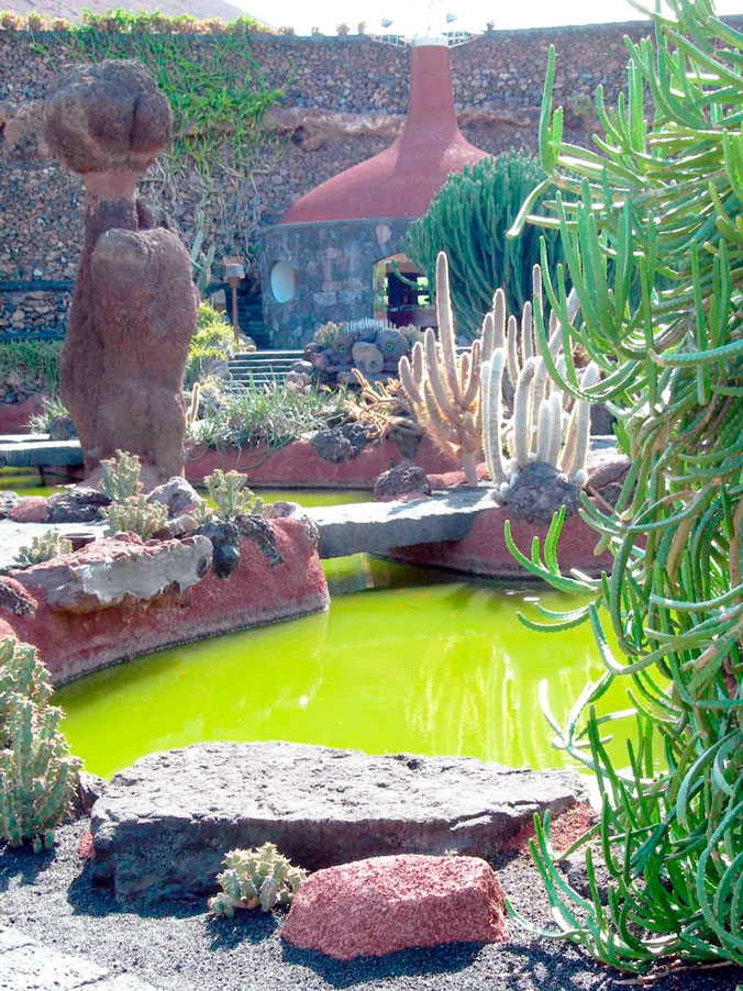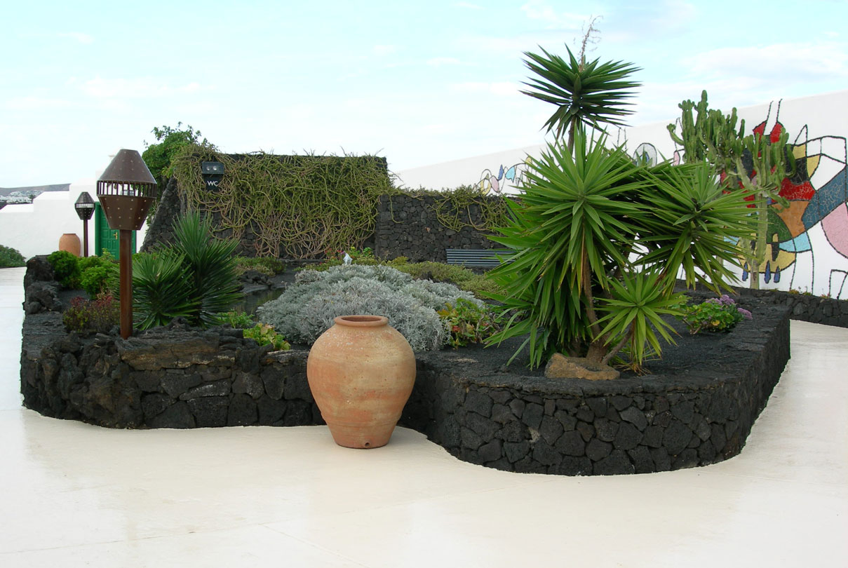 Incrustado en un gran paisaje de tuneras que crecen en un mar de gravas volcánicas, encontramos una de sus intervenciones, consistente en la creación de un original jardín.