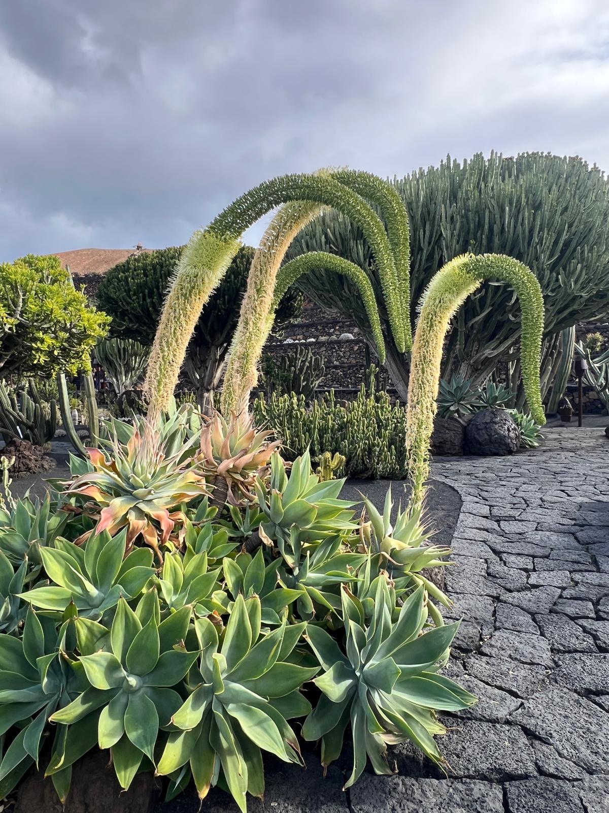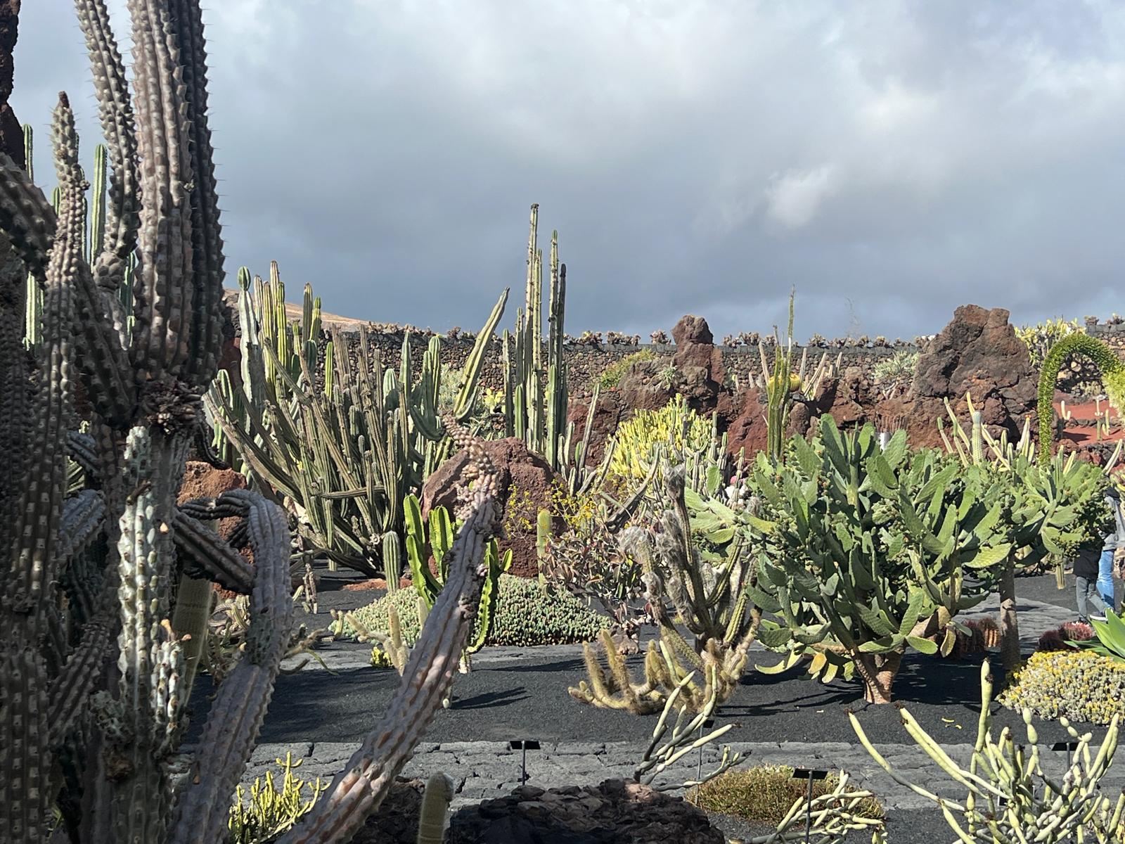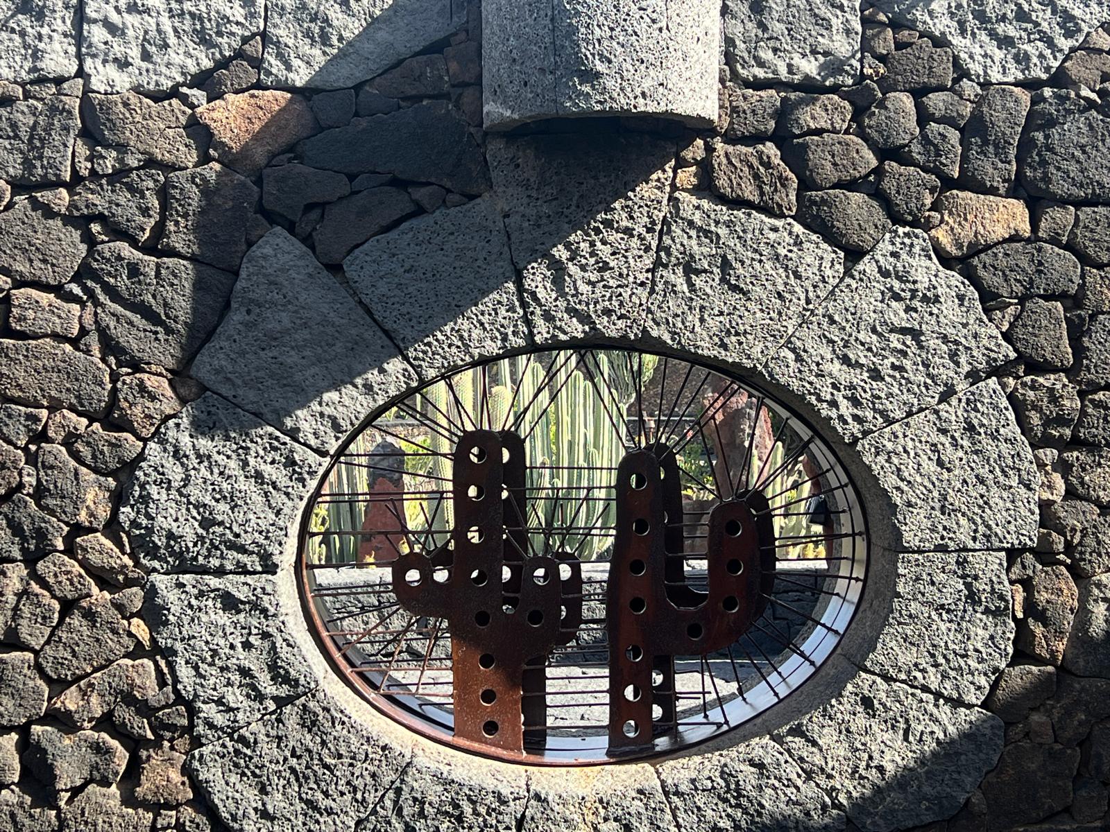 Escondido tras el muro de piedra que protege la entrada, se revela la vista del Jardín de Cactus de Guatiza: un entorno imponente donde se fusionan con maestría y delicadeza el paisajismo, la escultura y la jardinería en un solo espacio.