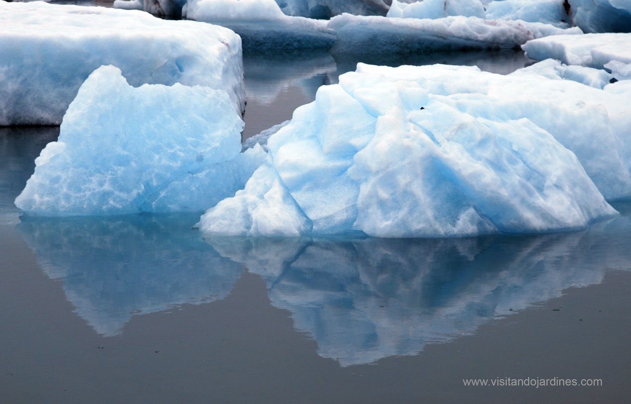 Ambas se encuentran llenas de grandes bloques de hielo flotantes, que se desprenden de la lengua del glaciar, formando espectaculares icebergs.