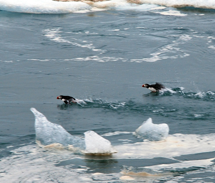 Desde la orilla, es bastante habitual que podamos avistar focas y distintas aves marinas, como los frailecillos, los skuas o charranes árticos, pescando y jugueteando entre los bloques de hielo.