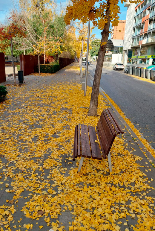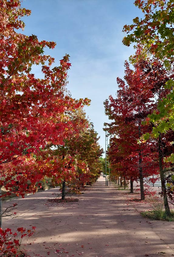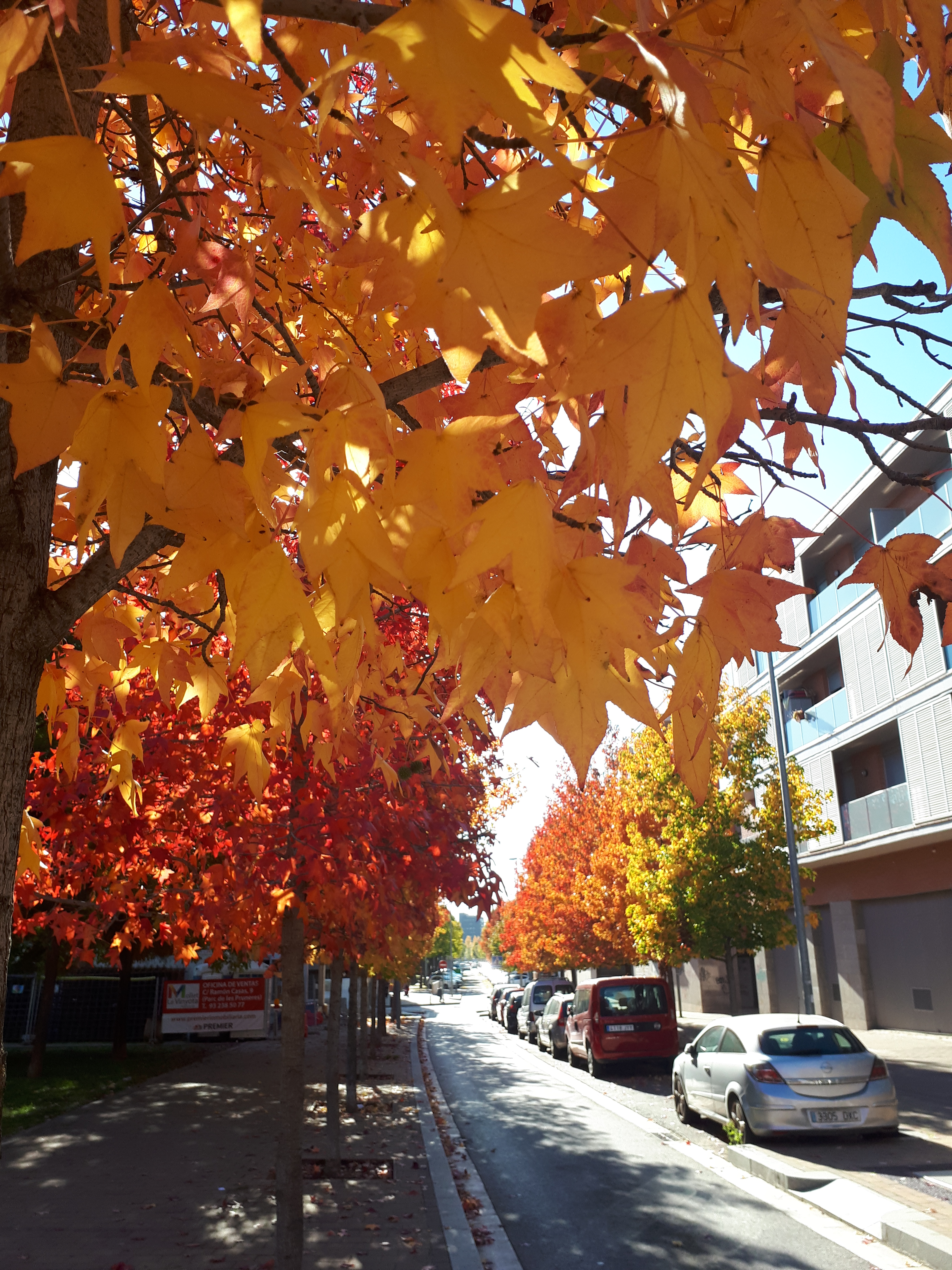 En nuestras ciudades de clima mediterráneo, especies como los Gingko, Liquidambar, Parrotia, Pistacea y distintos tipos de Acer y Fraxinus, son capaces de aportar este toque de color otoñal.