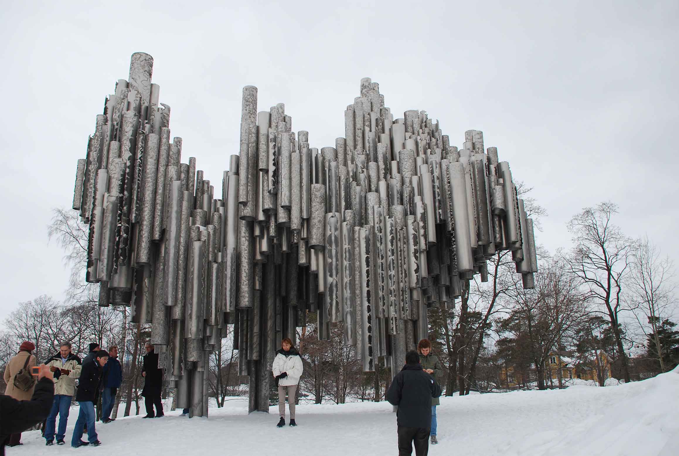 El monumento a Sibelius –polémica obra de la artista Eila Hiltunen en 1967- ganó el concurso por lo abstracto de sus estructuras tubulares que permiten recorrerla por debajo y crean sonidos y ecos en sus cavidades.