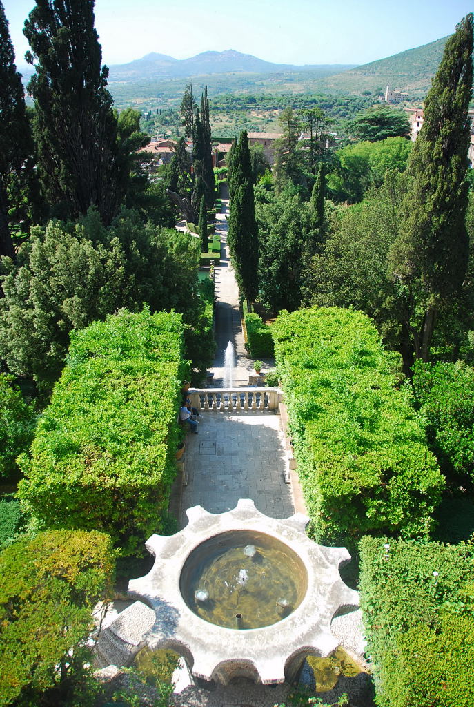 Rodeando un edificio palaciego, el cardenal d’Este como muestra de su inmenso poder, mandó construir unos espléndidos jardines aterrazados que descienden por la ladera y que requirió enormes esfuerzos y técnicas innovadoras, para conseguir abastecer las espectaculares fuentes, cascadas y juegos de agua.