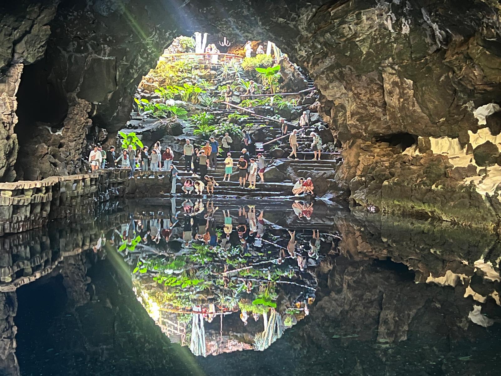 Aprovechando un desplome en el techo y la existencia de un lago interior originado por filtraciones marinas, Manrique consiguió crear un espacio único donde ser respira una atmósfera de paz y sosiego.