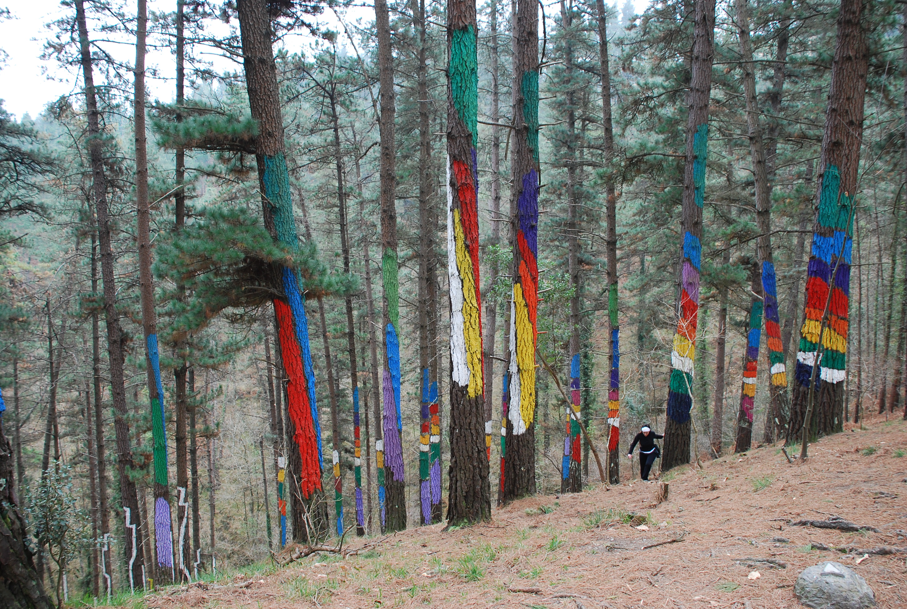 Este bosque, pintado por Agustín Ibarrola hace ya treinta años, ha despertado desde el inicio las más profundas controversias.