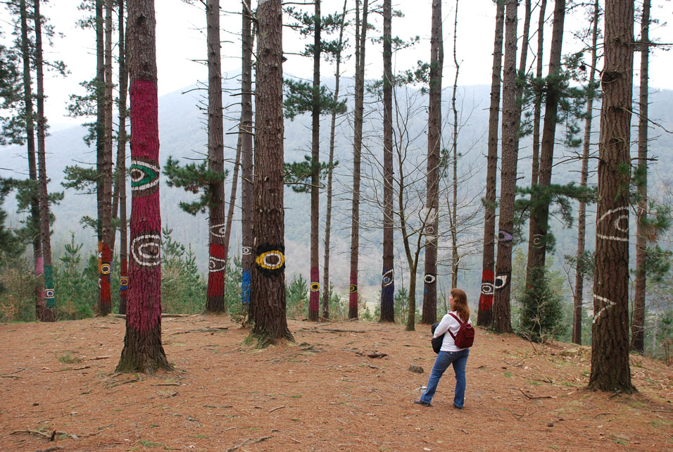 De repente los árboles del bosque parecen cobrar vida hasta el punto de sentirnos observados por sus coloridas pinturas.