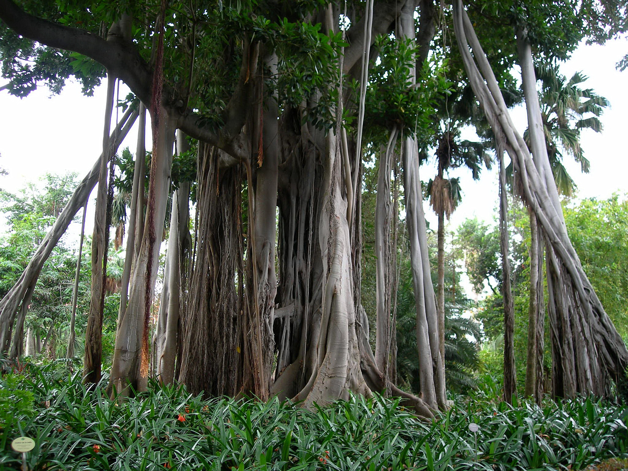 Alguno de los ejemplares son realmente espectaculares , como el famoso Ficus macrophylla f. columnaris, una subespecie nativa de la isla de Lord Howe en Tasmania con larguísimas raíces aéreas, de 150 años de edad y único en la islas, o también una gran Mammea americana de la época fundacional.