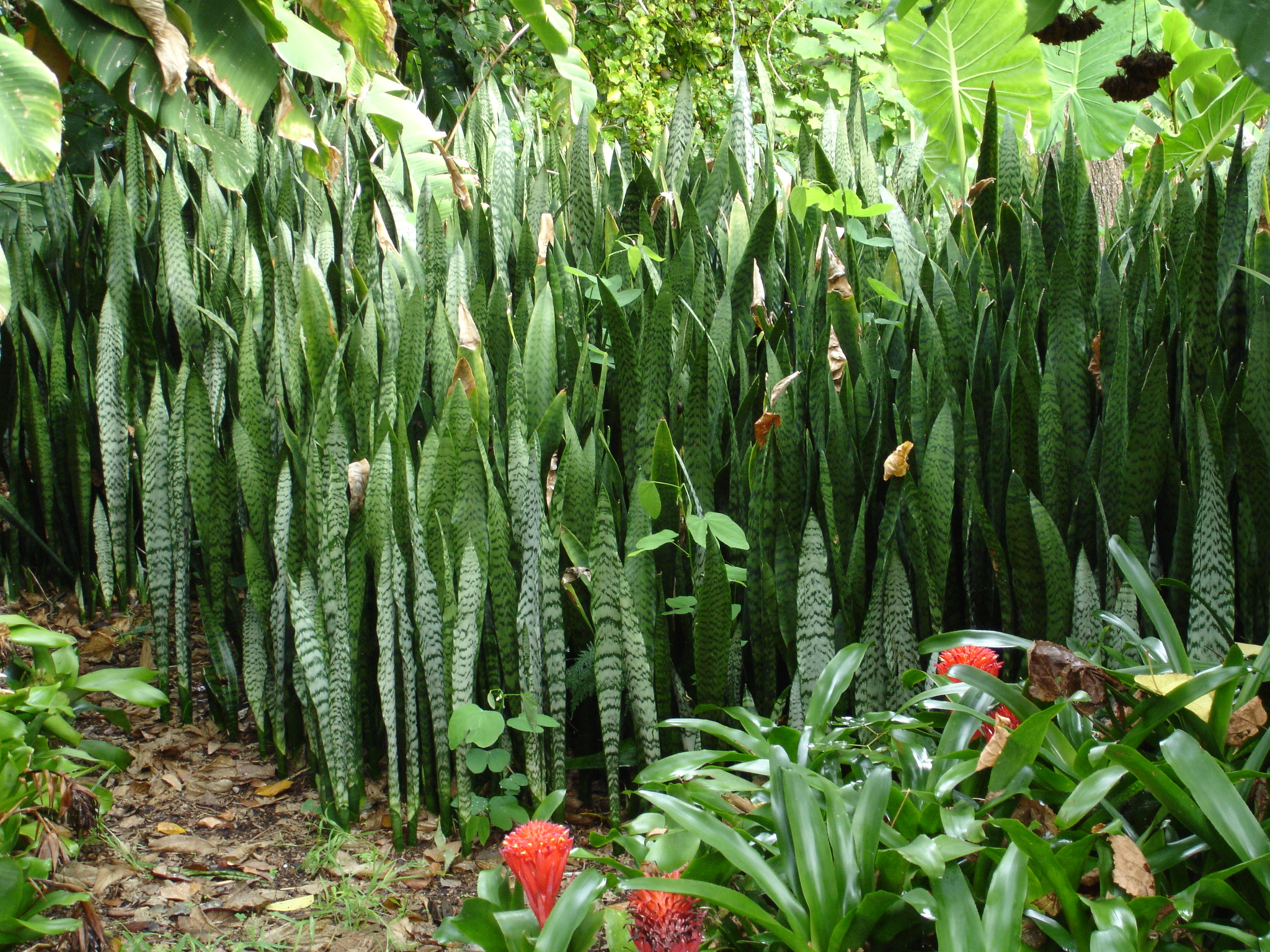 Sorprende encontrar plantas como la Sansevieria plantadas formando borduras y que habitualmente en Europa relacionamos como planta de interior, o descubrir la Ananás (piña tropical) y comprobar que contrariamente a lo que muchos creen, se trata de una planta herbácea de altura moderada.