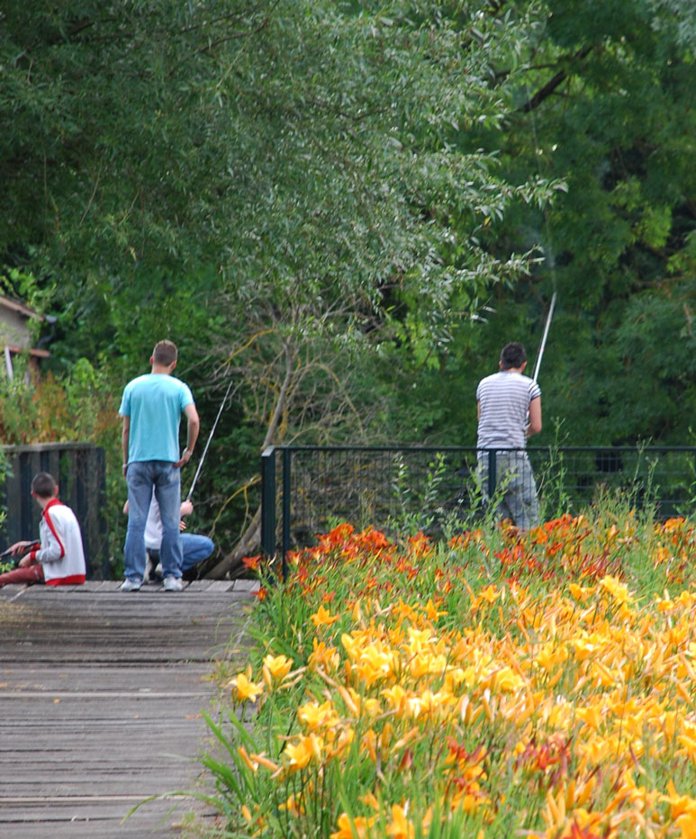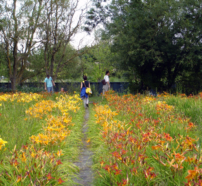 Una gran pieza rectangular, plantada con hemerocallis e iris de inigualables colores estivales, es muy visible desde las murallas de la ciudad y su forma evoca el espíritu de los jardines del siglo XVII.