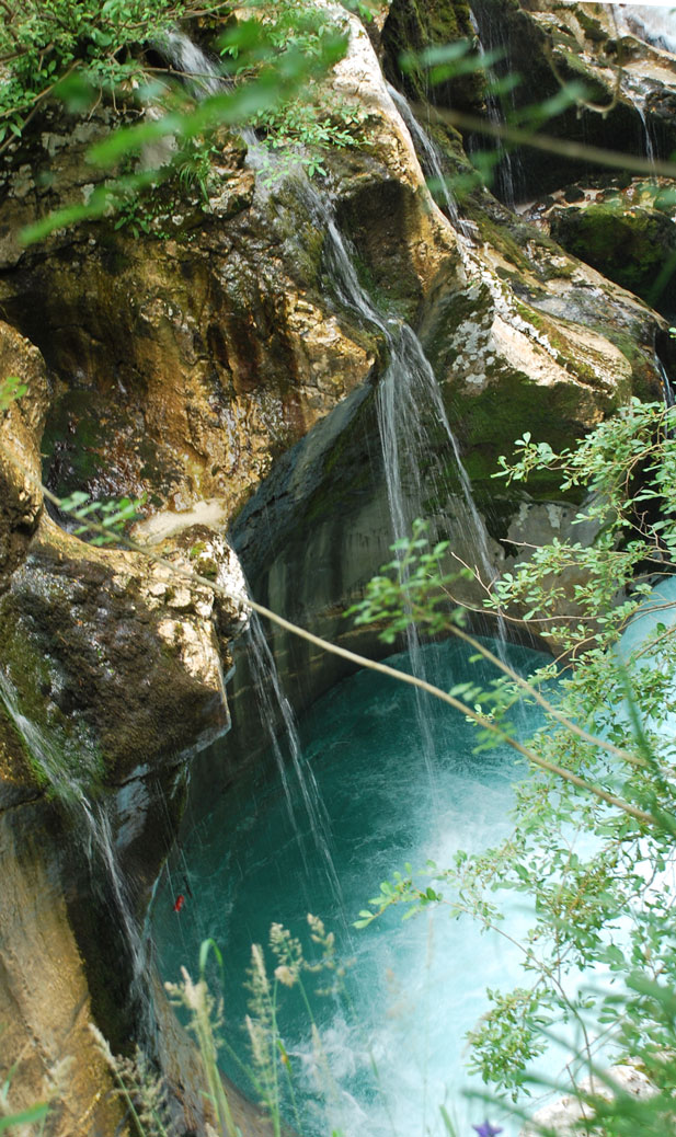 Tampoco sorprende que la moda de los deportes de aventura se haya implantado con fuerza en este paraje, ya que su curso pasa por misteriosos desfiladeros y profundas pozas, pero el tono de sus aguas mantiene un increíble color azul turquesa, casi traslúcido todo el tiempo.