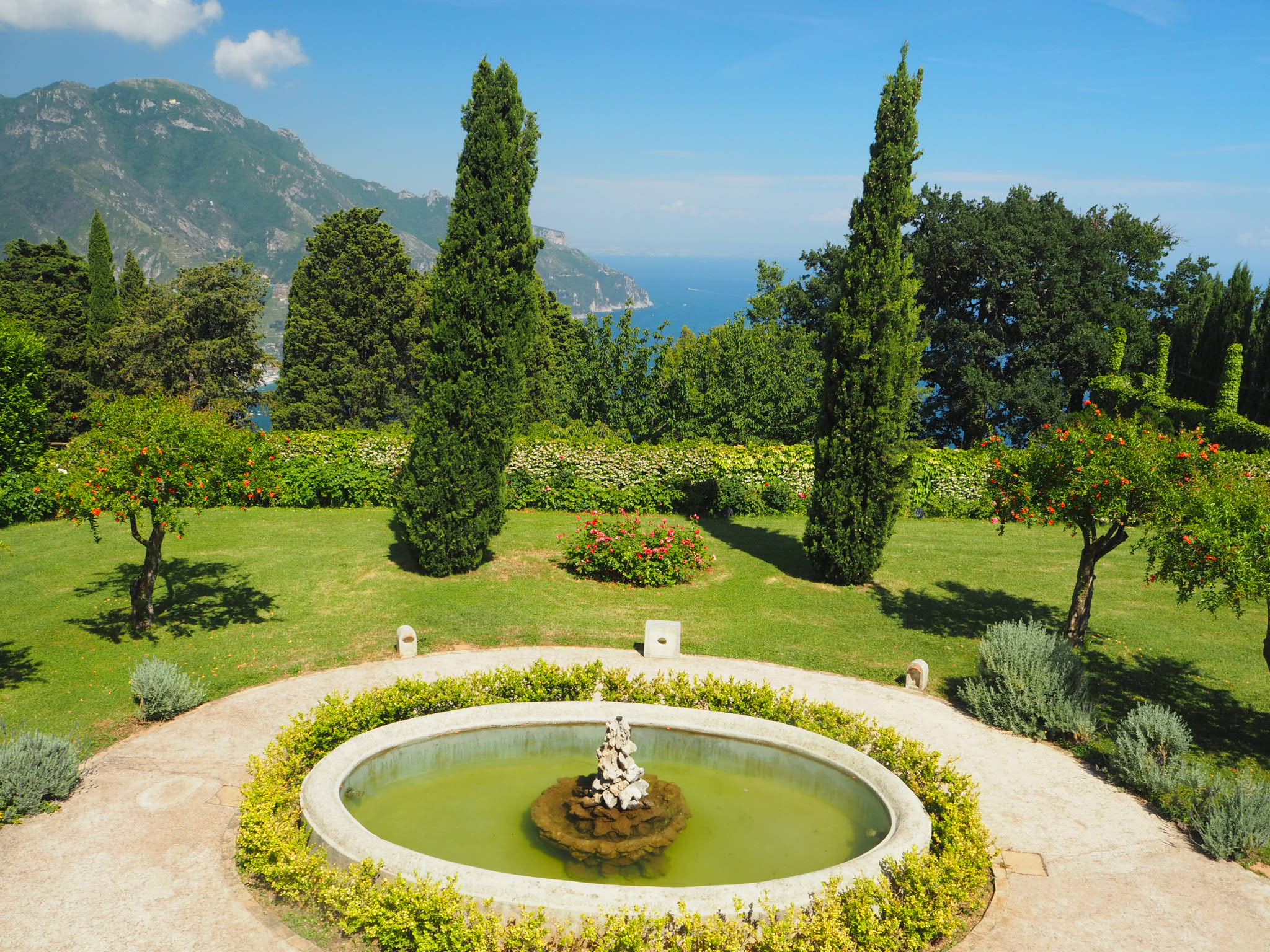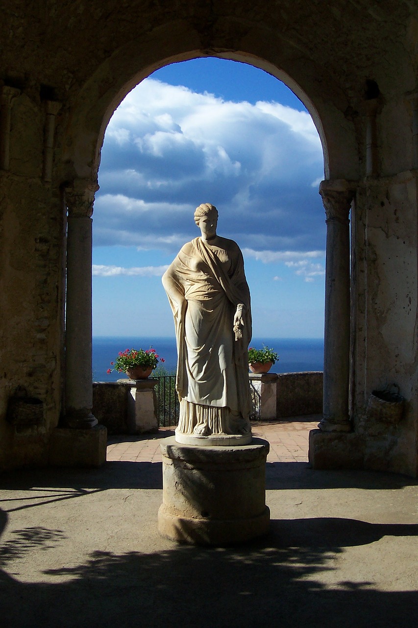 Las maravillosas vistas de la Terraza del infinito, los innumerables estatuas de estilo romano, las cuevas, templetes y el aroma de la vegetación mediterránea del jardín, le confieren la pausa y el glamour de una manera de vivir, que caracteriza la costa de Amalfi.