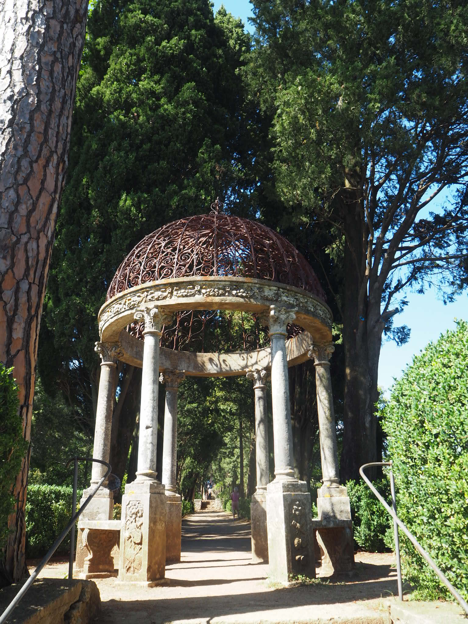 Los jardines, dotados de remarcables vegetación como glicinas, cipreses y arboles del amor, entre otros, poseen muchos elementos interesantes: estatuas, pequeños templos, fuentes, cuevas naturales y varias obras de arte.
