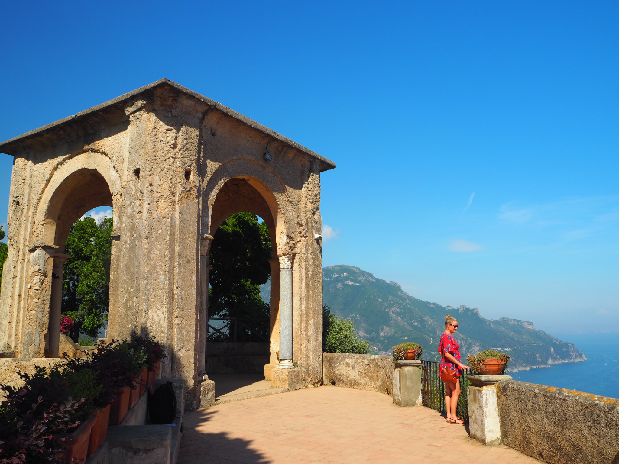 Aquí, situada en lo alto de un promontorio, el jardín de la histórica Villa Cimbrone ofrece unas vistas espectaculares de la costa Amalfitana, con un paisaje inmenso e impresionante.