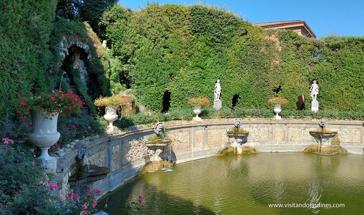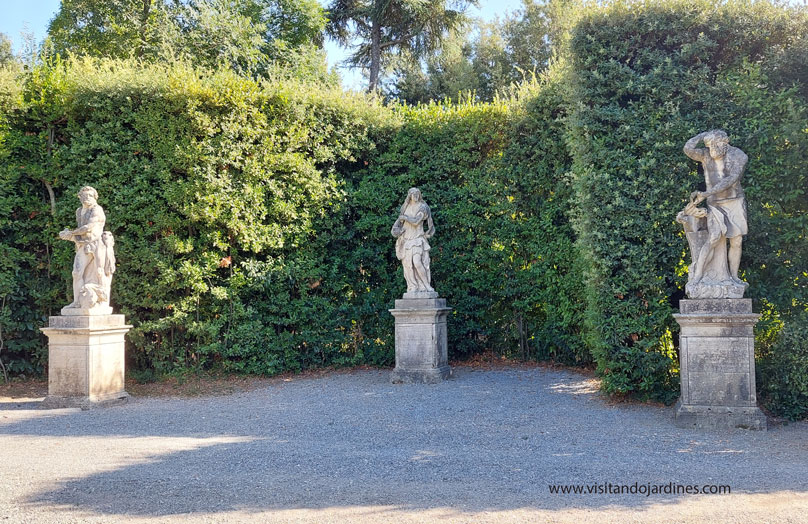En su cabecera, dos grandes estatuas de gigantes en reposo, representan los ríos Arno y Serchio simbolizando el origen de agua y la grandeza del jardín. Se trata de un elemento simbólico muy repetido en los jardines italianos de la época.