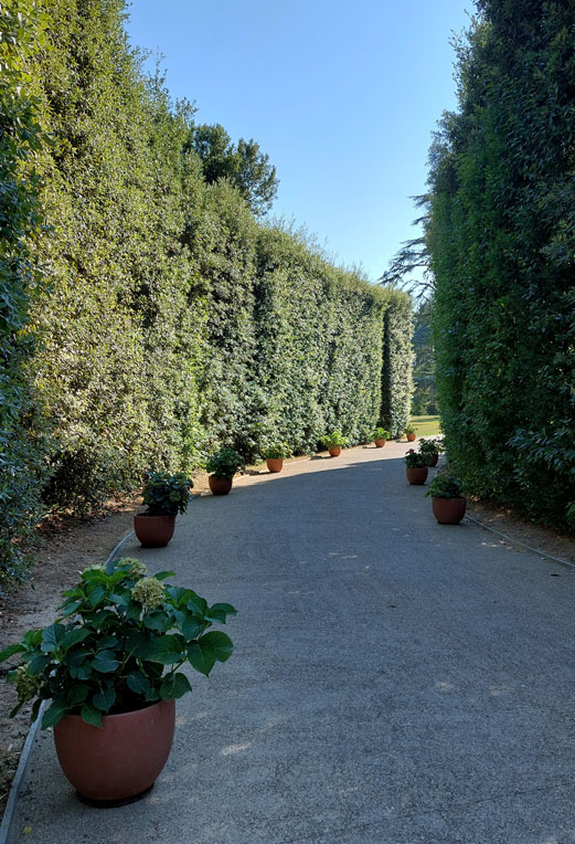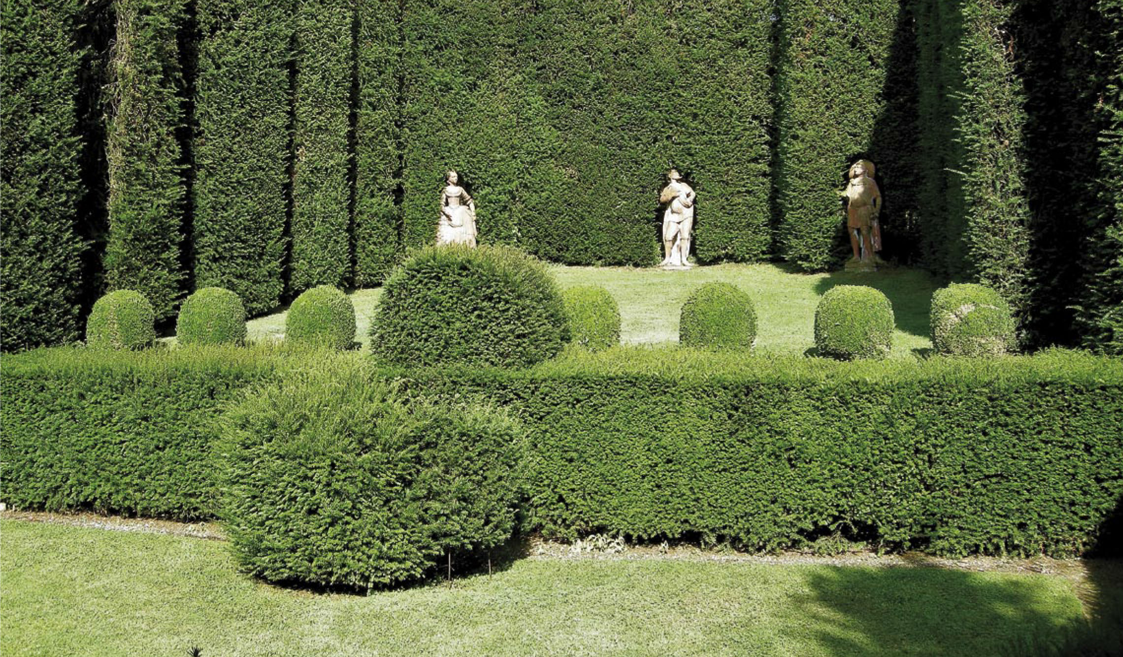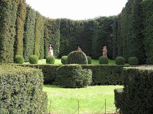 En el jardín, no resulta difícil reconocer las partes originarias del siglo XVII, ya que se encuentran enmarcadas por setos que controlan las visuales y esconden los distintos espacios que contienen.