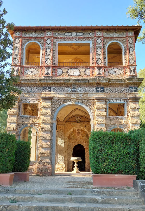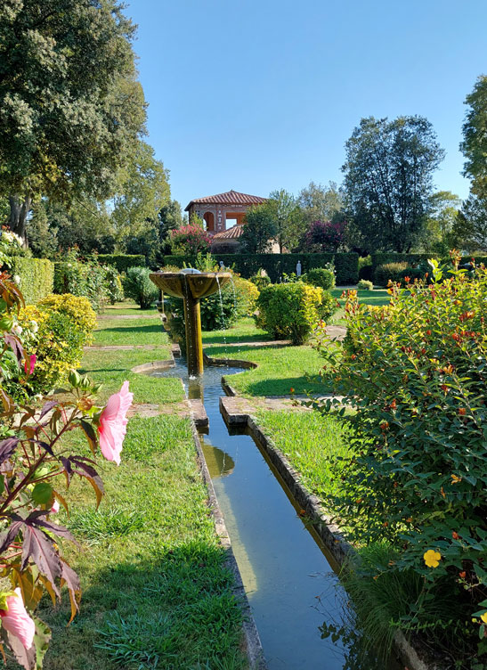La villa, que en sus orígenes funcionaba como una importante explotación agrícola, se caracterizaba por los espectaculares setos formados por robles recortados, que enmarcan construcciones como la Villa del Vescovo, la Palazzina dell’Orologio o el teatro d’Acqua.