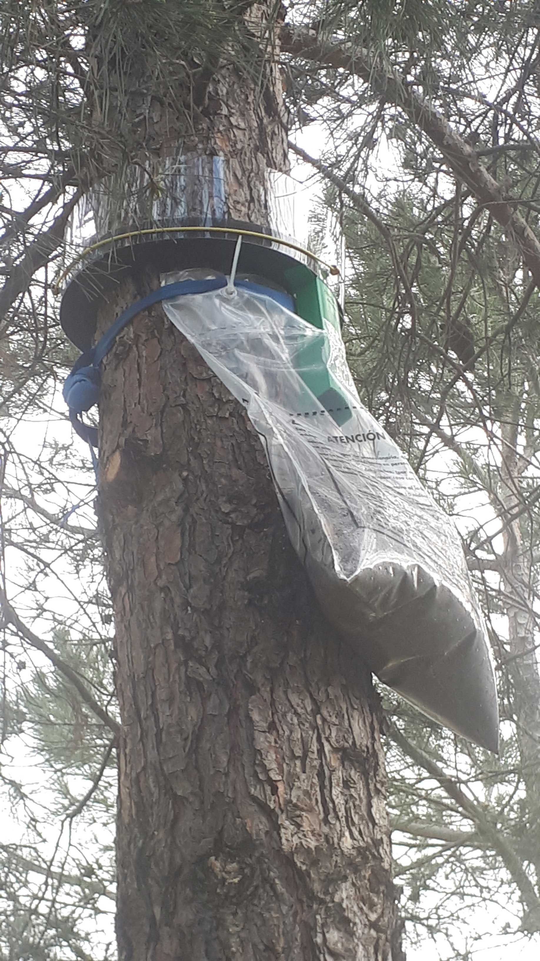 - Estrategia de confusión sexual con feromonas a dosis altas. Es un método novedoso, respetuoso y muy selectivo, que funciona mejor cuando se trata de masas continuas y resulta menos efectivo en pinos aislados. Deben realizarse aplicaciones puntuales durante el verano y es más efectiva con los años.