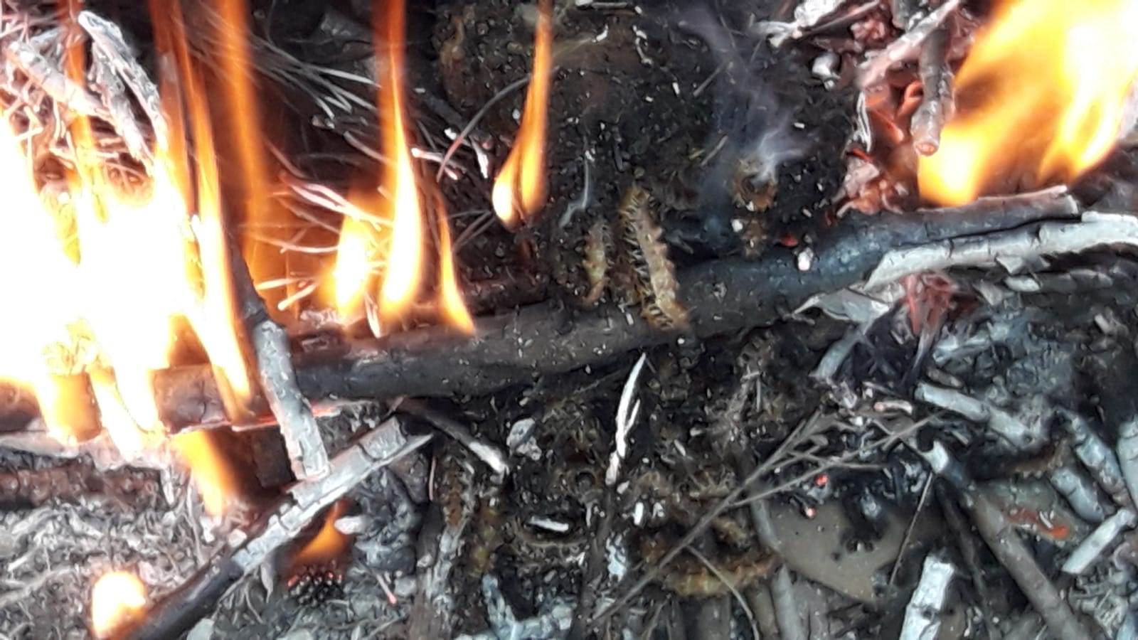 - Retirada mecánica manual y destrucción mediante incineración de las bolsas accesibles.