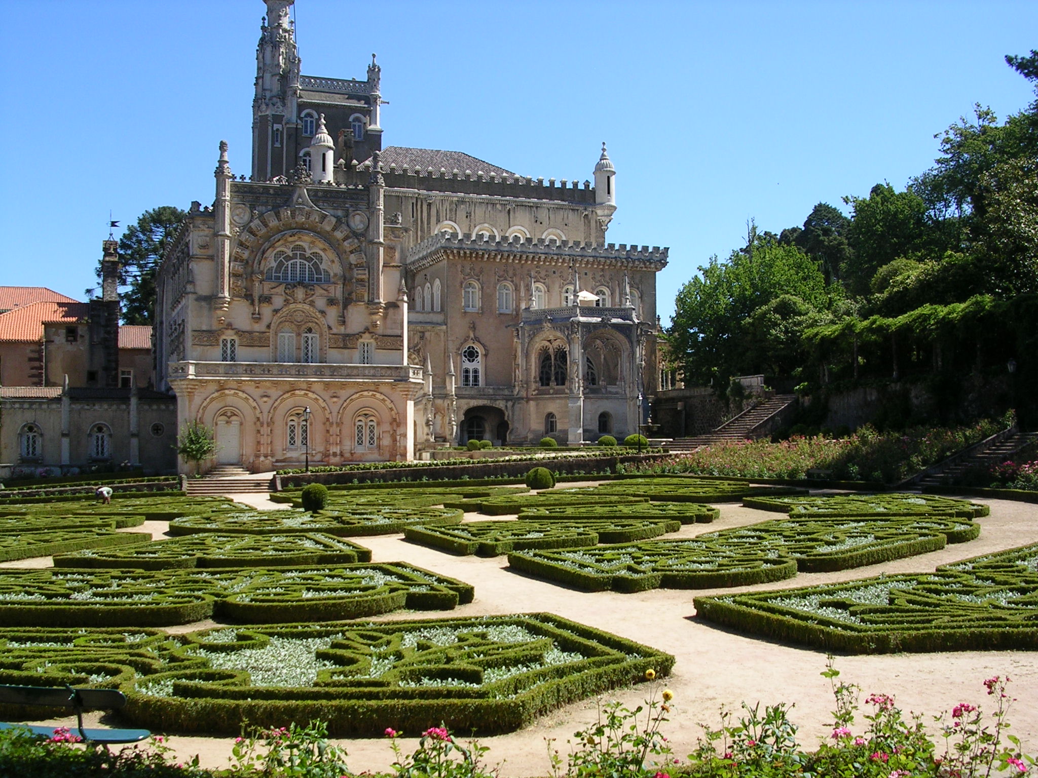 En lo alto del monte, por encima del bosque, se erigen las dos principales edificaciones del conjunto. El convento de Santa Cruz, y el gran Palacio de Bussaco, construido a partir de 1888 sobre una parte del convento, después que las órdenes religiosas fueran expulsadas de Portugal, rodeado por un jardín formal de borduras recortadas y que hoy es la sede de un lujoso hotel.