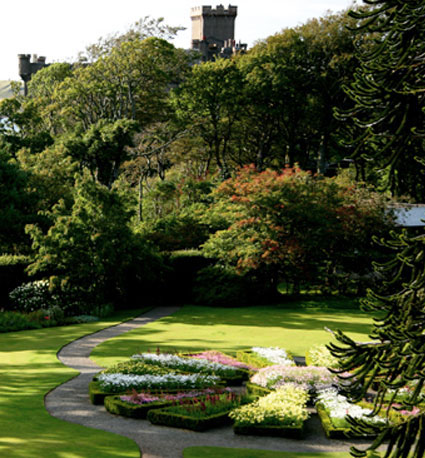 Los jardines, más interesantes que la propia edificación, tienen su origen en el siglo XVIII a partir de un pequeño bosque autóctono y forman un oasis de vegetación frondosa que contrasta con el paisaje de páramo y praderas recubriendo colinas y montes, que dominan el paisaje de Skye.