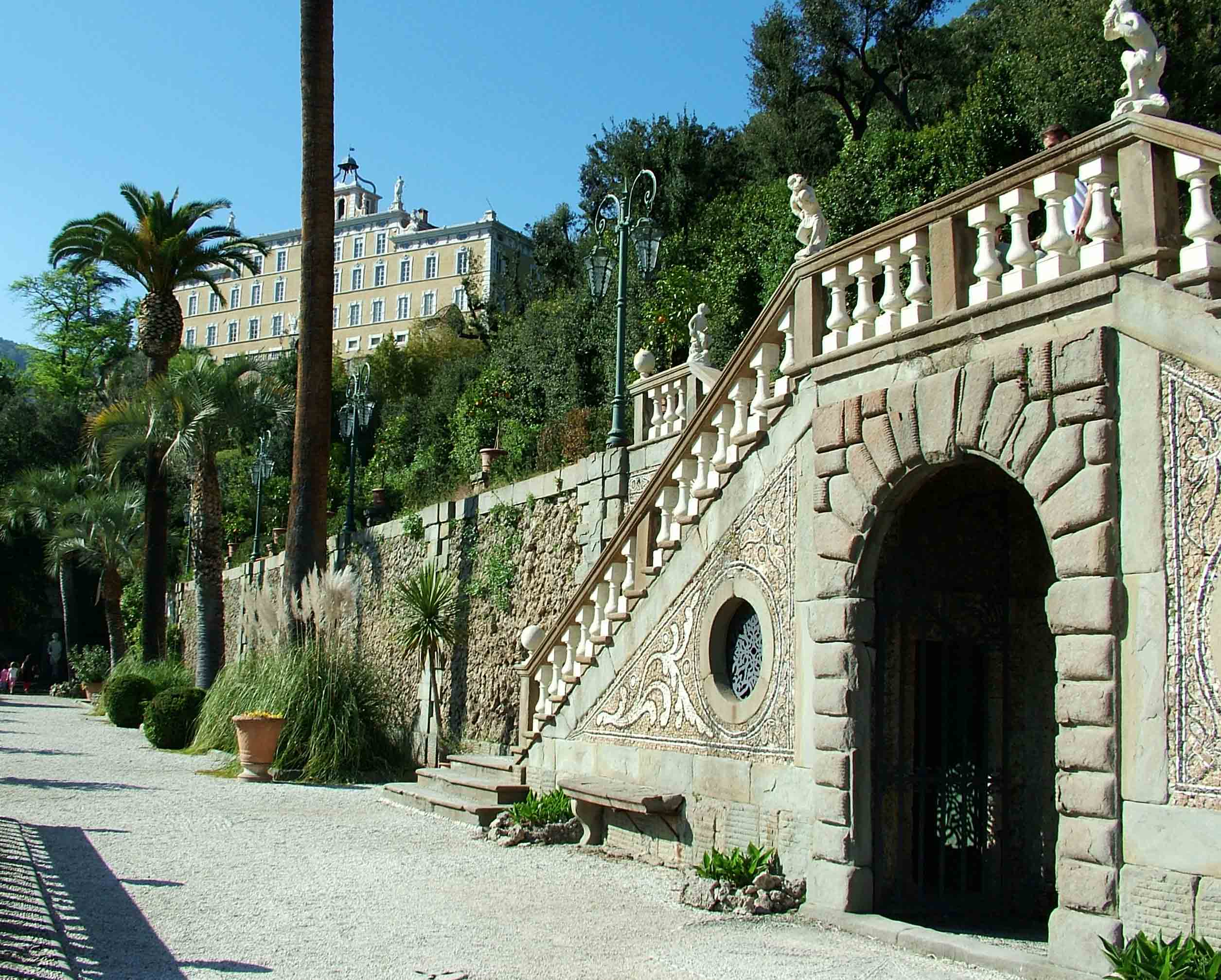 En el jardín, el ingenio de sus creadores permitió superar las dificultades de construir un jardín sobre un terreno extremadamente escarpado, transformándolas en la oportunidad de construir una espléndida terraza italiana, formada por múltiples niveles que escalan la ladera.