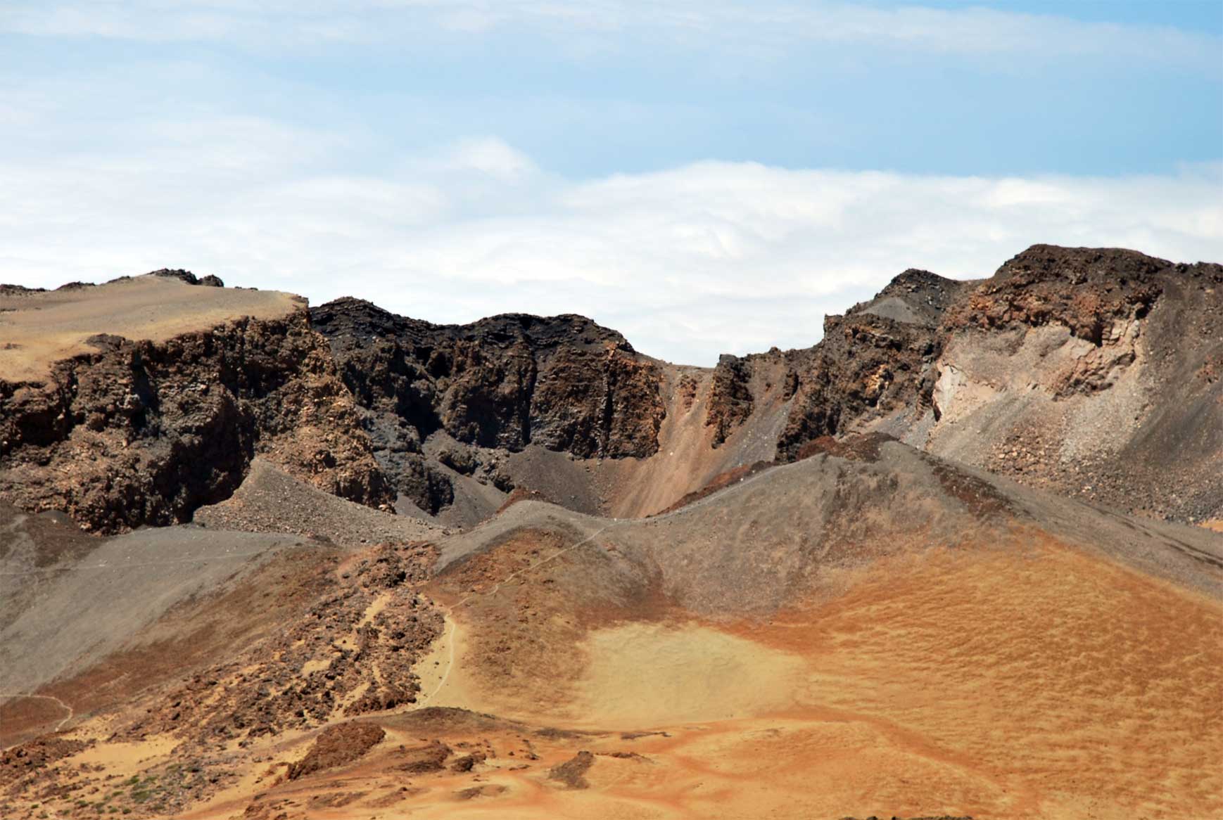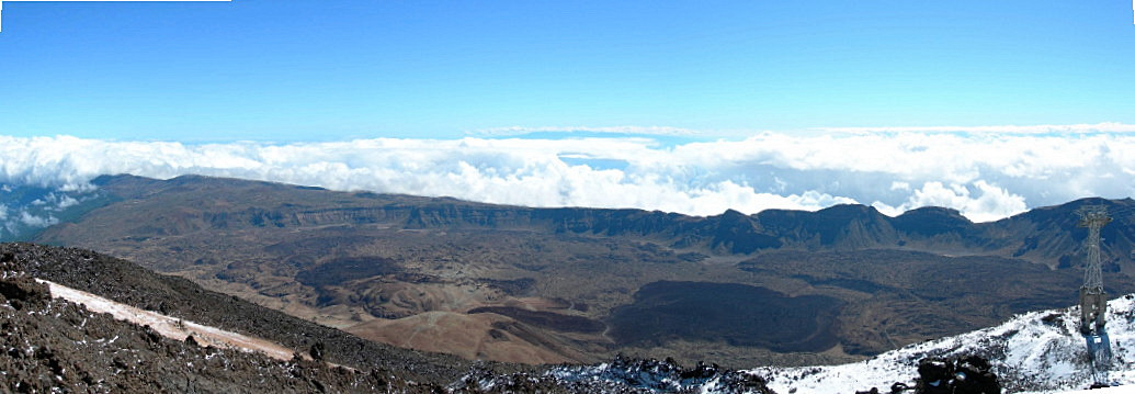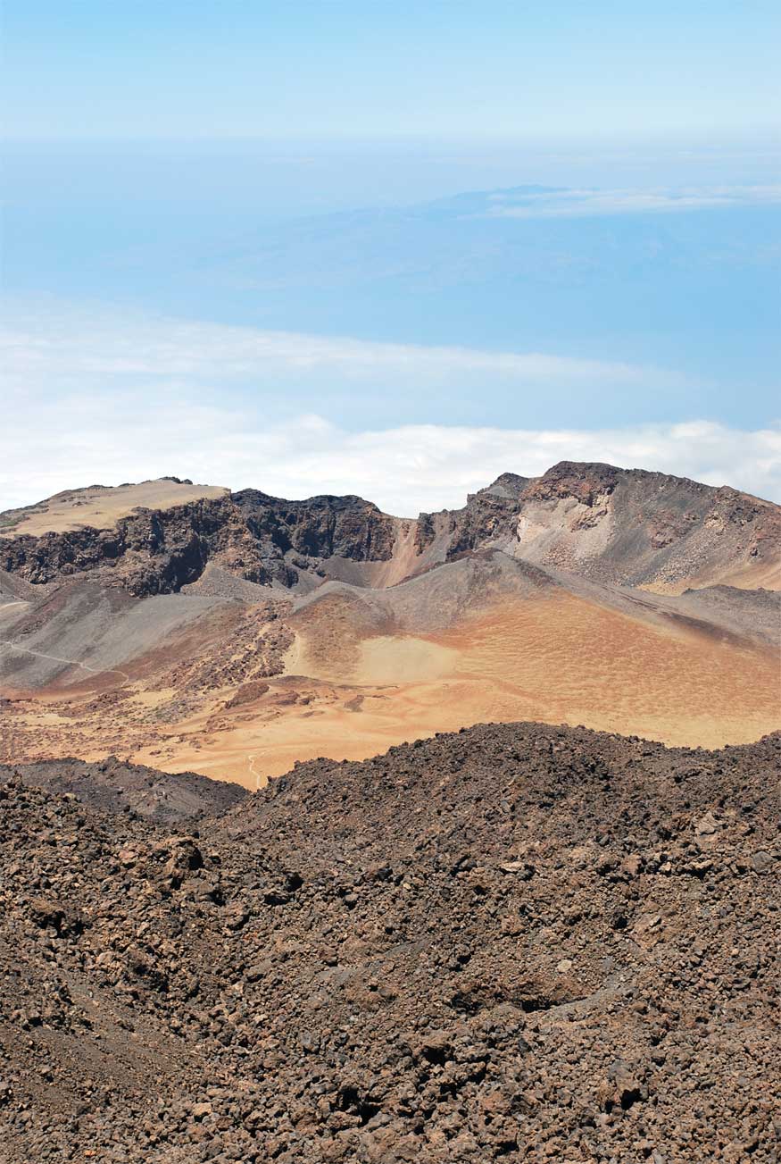 El circo de Las Cañadas, de 16 km de diámetro, es una de las mayores calderas volcánicas del mundo. Las lavas procedentes de las distintas erupciones han rellenado inmensas superficies con materiales volcánicos de todo tipo, formando un espectacular paisaje de aspecto lunar.
