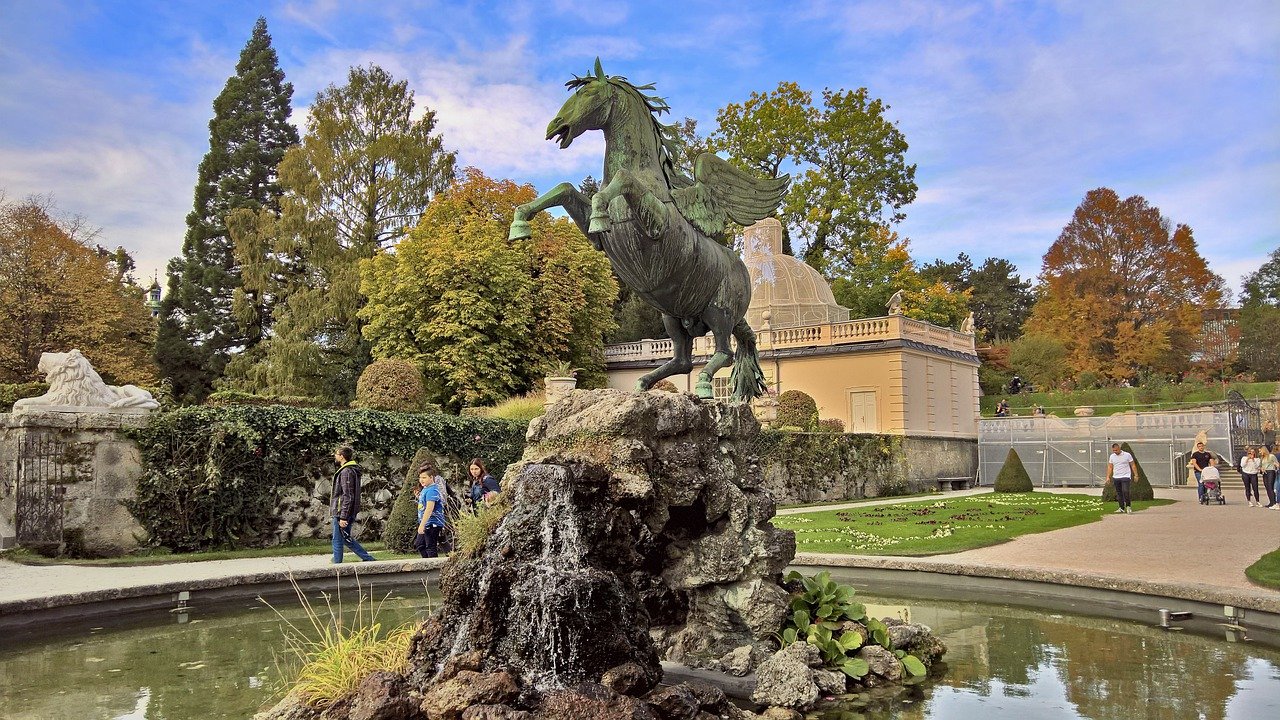Uno de los elementos más destacados del jardín es la Fuente de Pegaso. La figura muestra a Pegaso en el momento en que se eleva en el aire, en dirección a la catedral de Salzburg.