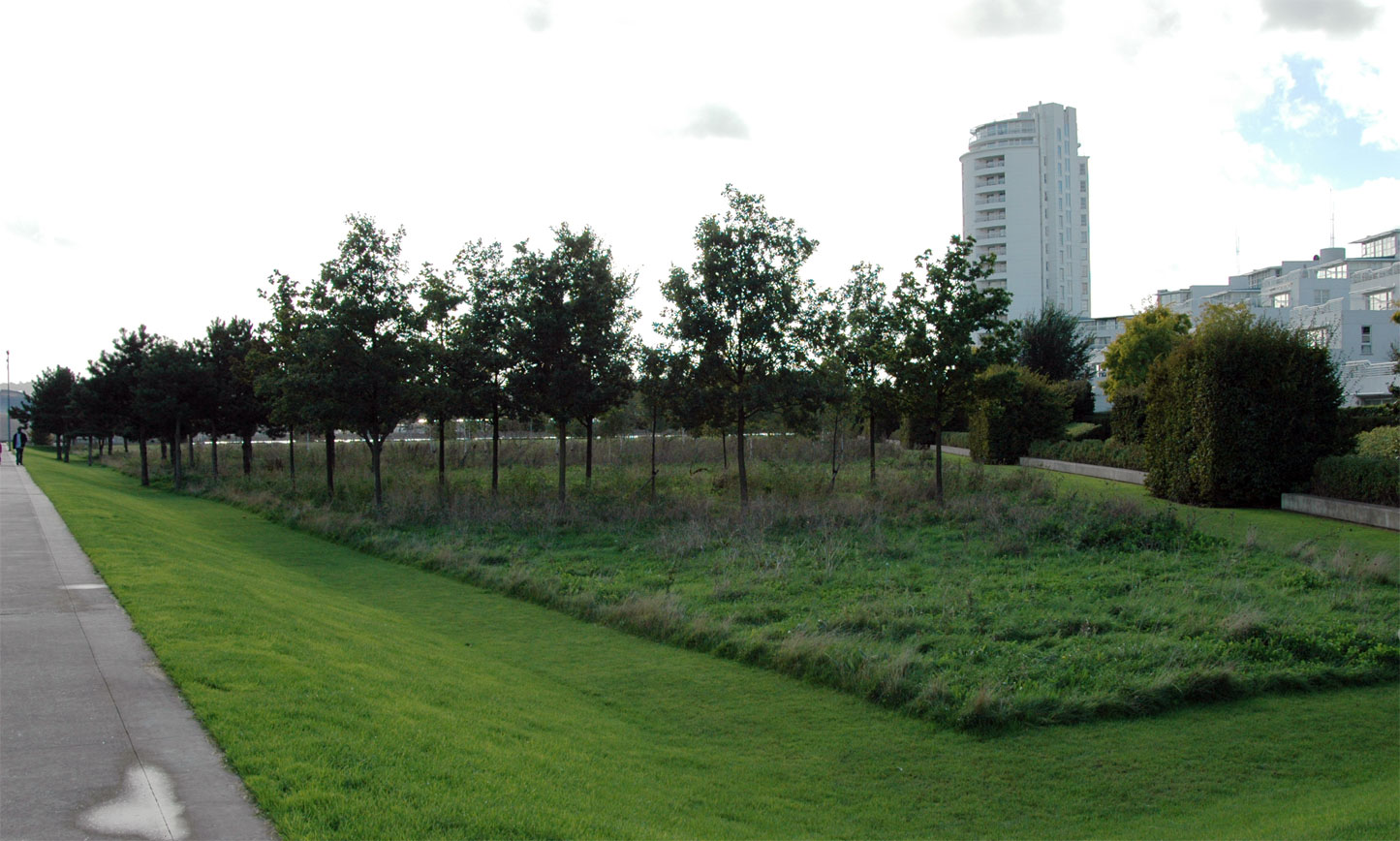 Se trata del «Green Dock«, un gran dique seco y verde, que está cubierto con vistosas plantaciones lineales recortadas en topiaria, que prosperan resguardadas del viento.
