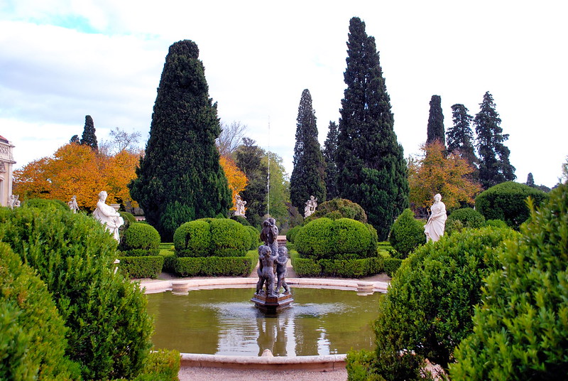 Desde estos jardines nacen un conjunto de avenidas y paseos con lagos y fuentes situados en sus intersecciones.
