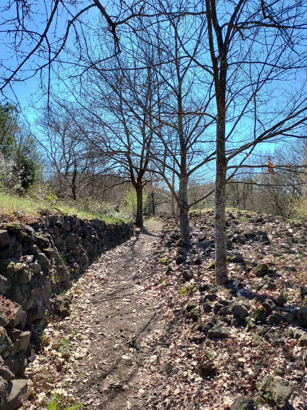 La ruta más sencilla es a través de la via verde partiendo des de Olot, que en los 2km escasos de recorrido, permite un primer contacto con el paisaje que se despliega sobre la colada volcánica.