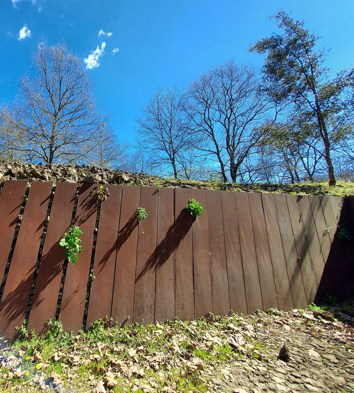 El contraste del acero, con las rocas y la vegetación que surge espontáneamente entre ellas, genera imágenes de gran belleza.
