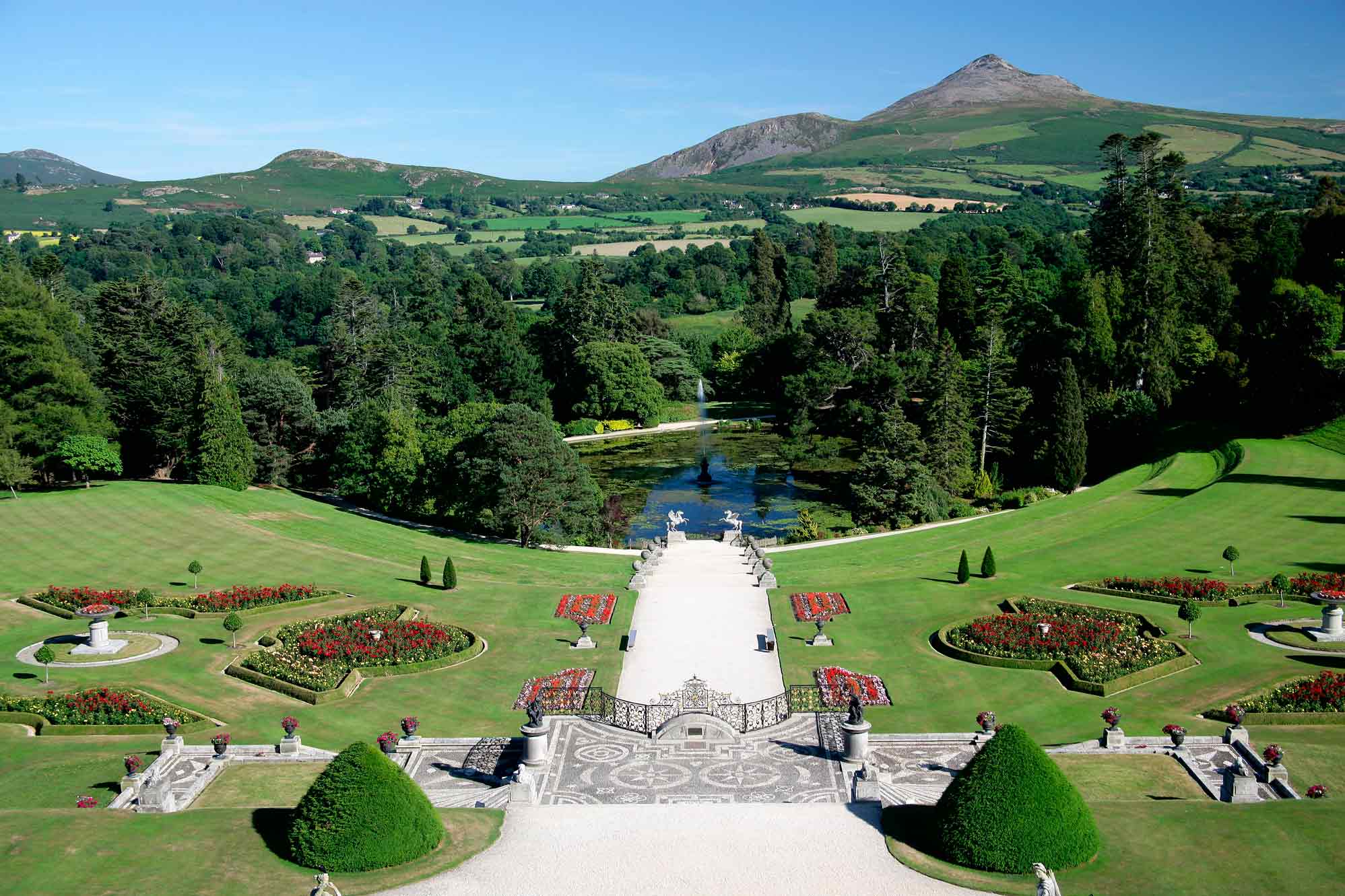 A finales del XVIII, el poderoso lord Powerscourt decidió edificar una gran mansión Palladiana con espectaculares jardines, construidos a imagen de los grandes jardines de la época.