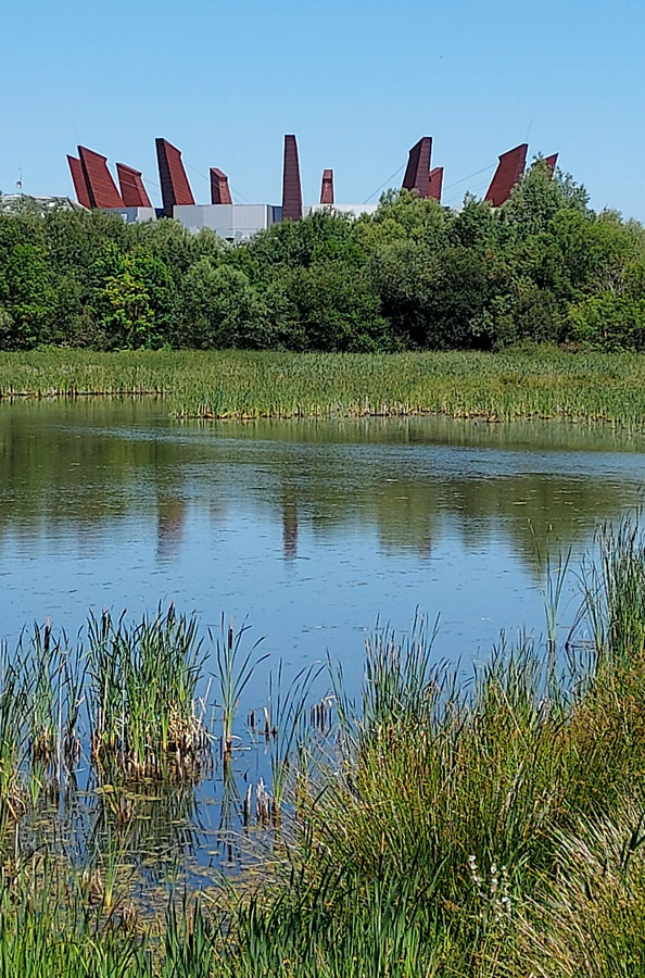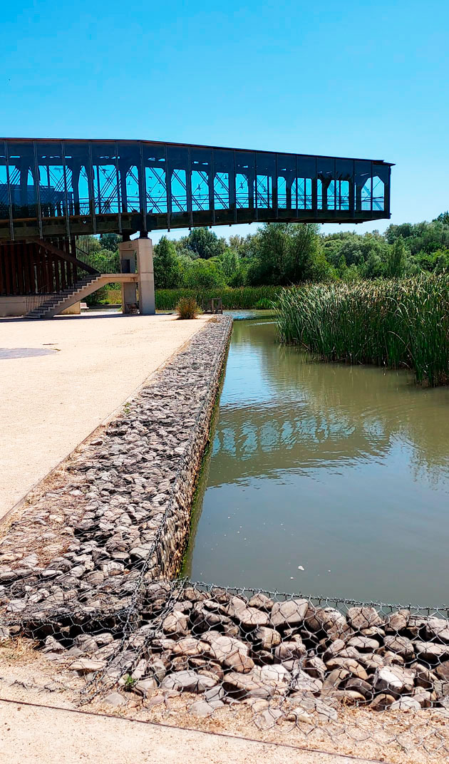 Justo al lado de ellos, se encuentra un espectacular edificio de madera diseñado por QVE, que acoge el Centro de interpretación de los humedales de Salburúa, conocido como Ataria.