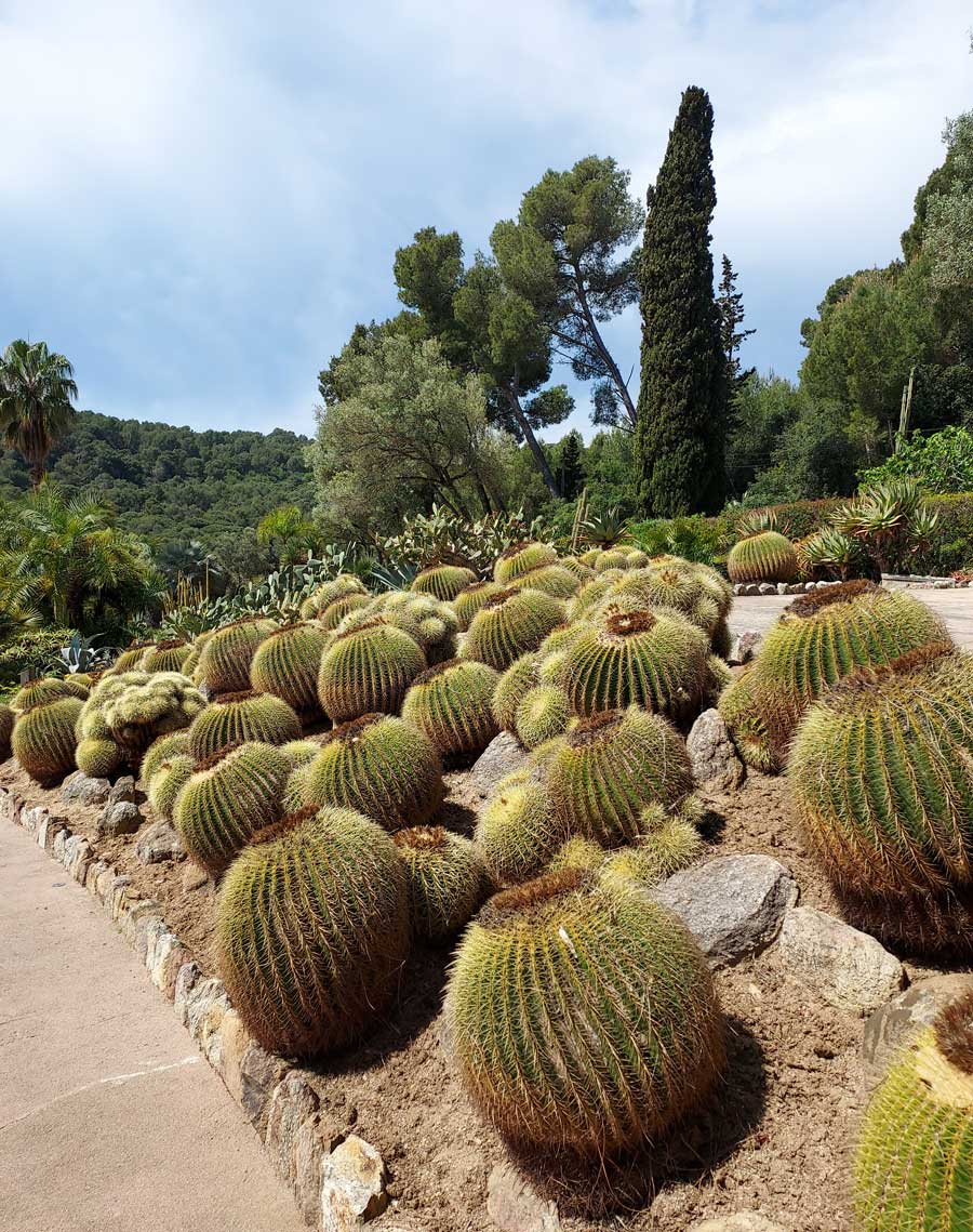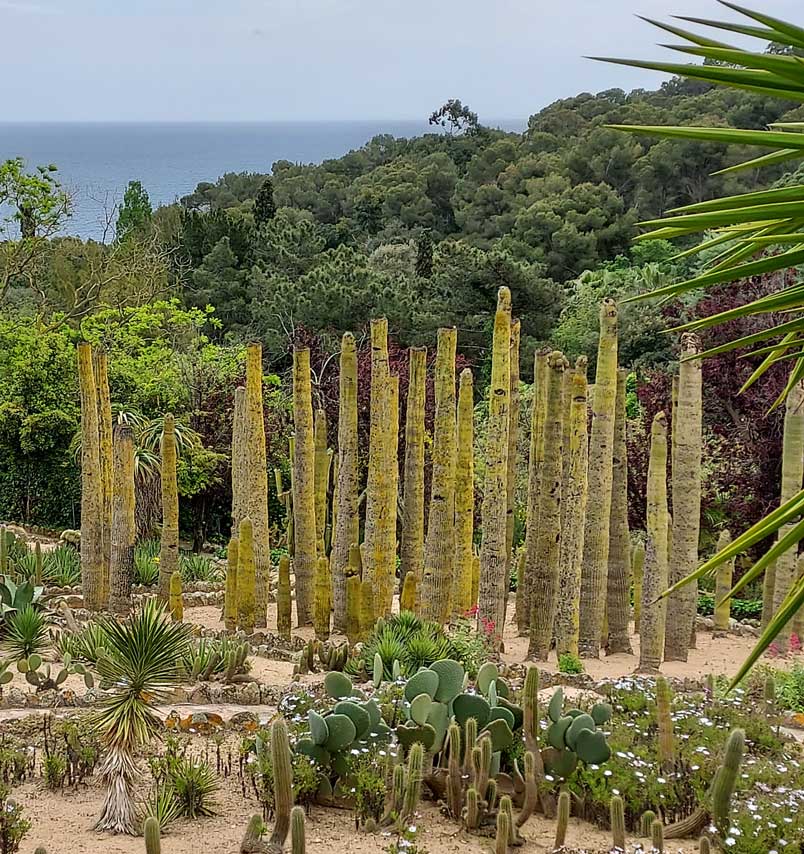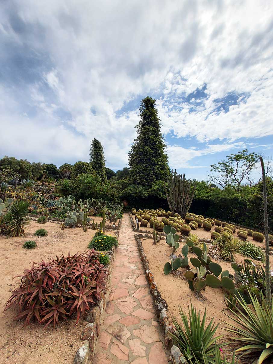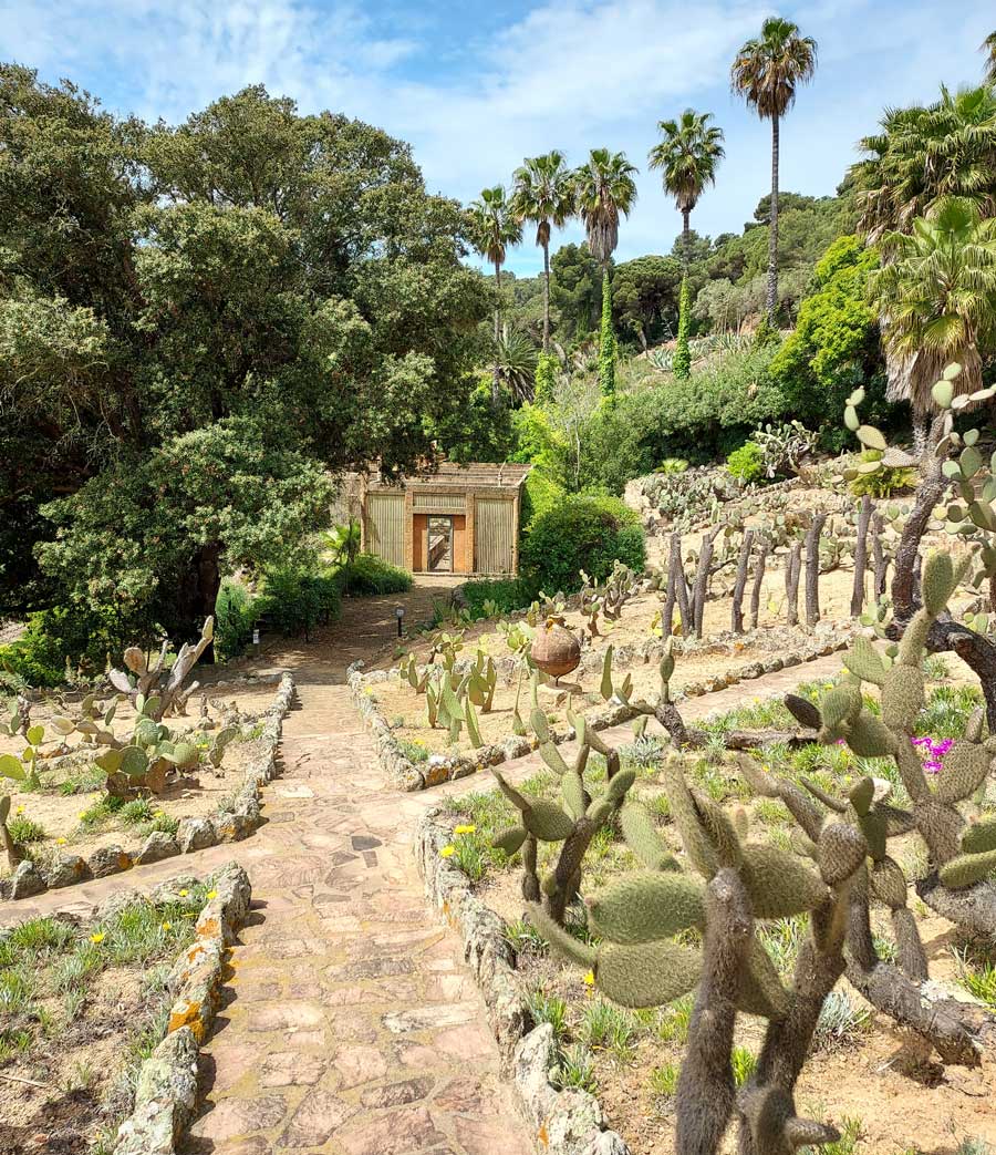 En el jardín, se mezclan cactus de distintas formas y tamaños. Grupos de ejemplares columnares, que llegan a medir varios metros, se combinan con las especies globulares y cladodios que aparecen formando imágenes de gran belleza.