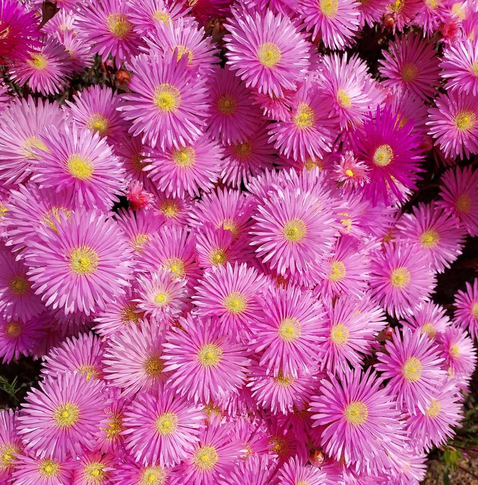 También los llamativos Lamprathus, plantados a centenares por los taludes y rocallas, forman un gran estallido de colores abriendo cada día su múltiples flores, a los rayos del sol de primavera.