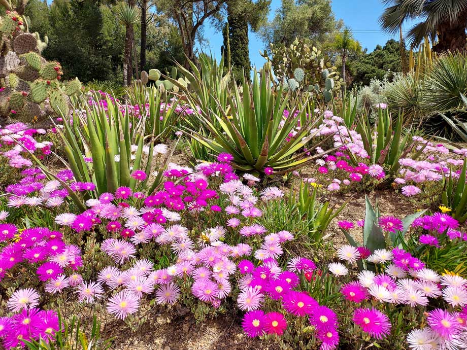 A pesar de todo, el jardín botánico dispone aún de una gran colección de cactus y plantas crasas con floraciones espectaculares. La mayoría de ellas presentan su momento de máximo esplendor entre primavera y verano, pero también algunos aloes florecen en invierno.