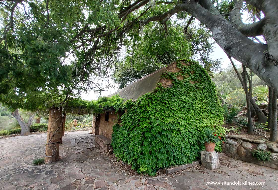 Se conservan todavía algunas edificaciones en el jardín. Una pequeña construcción de piedra, rodeada de árboles, parece rememorar el carácter agrícola que tubo la finca y ofrece una sombra muy agradable, donde resguardarse los meses de calor intenso.