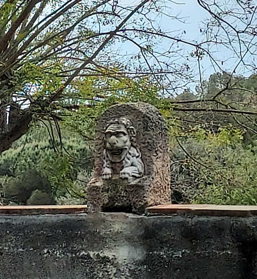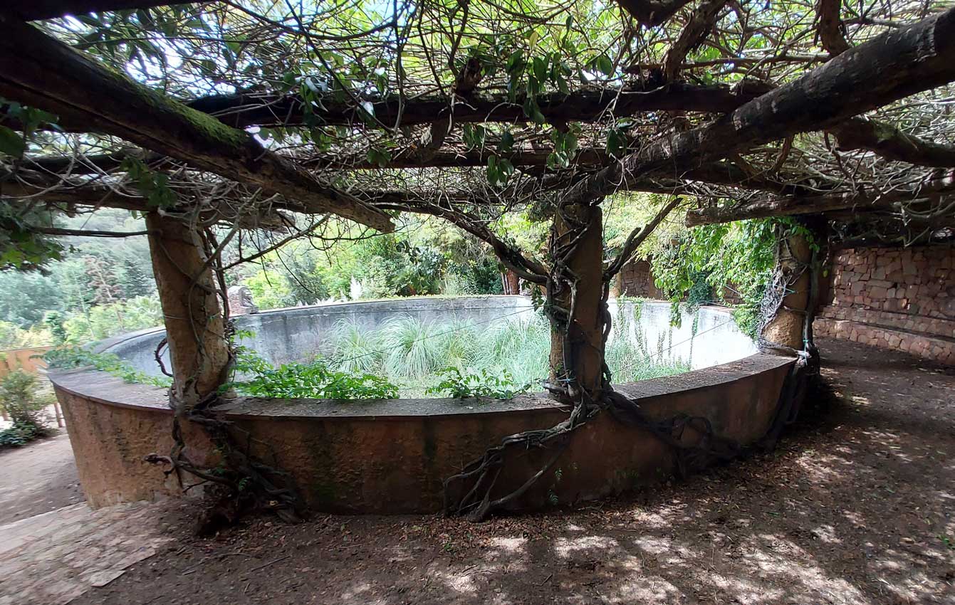El estanque del León, una infraestructura básica para el jardín, se encuentra sin agua. Incluso así, todavía es posible imaginar lo acogedor y eminentemente romántico que debió resultar el lugar en su momento.