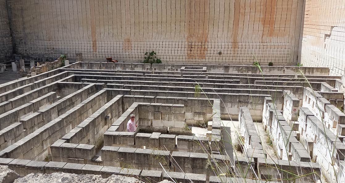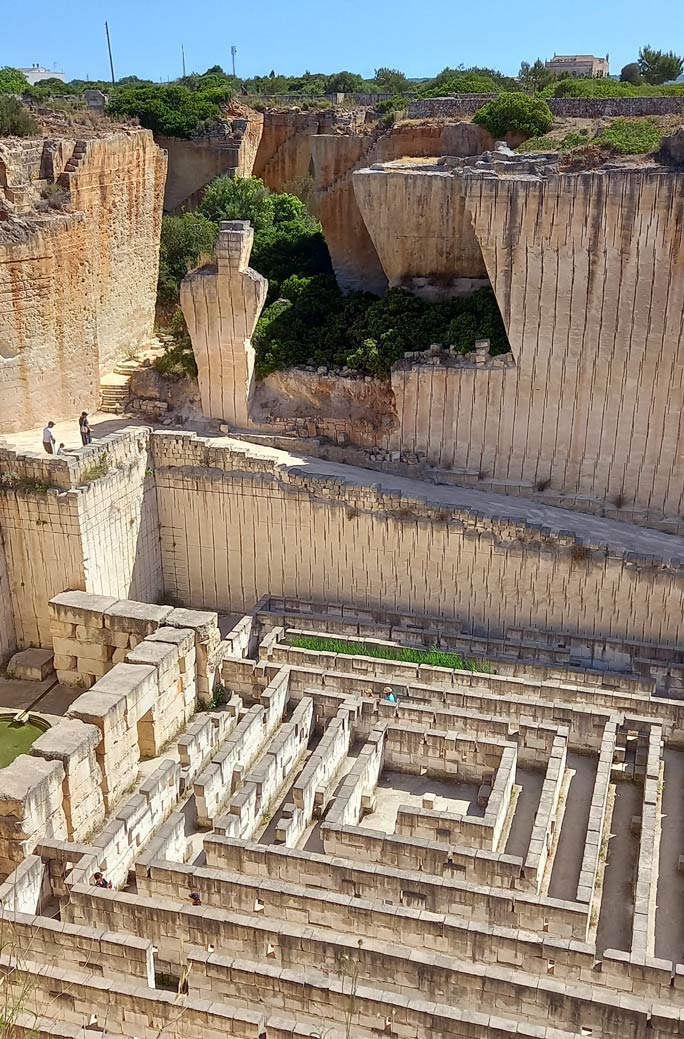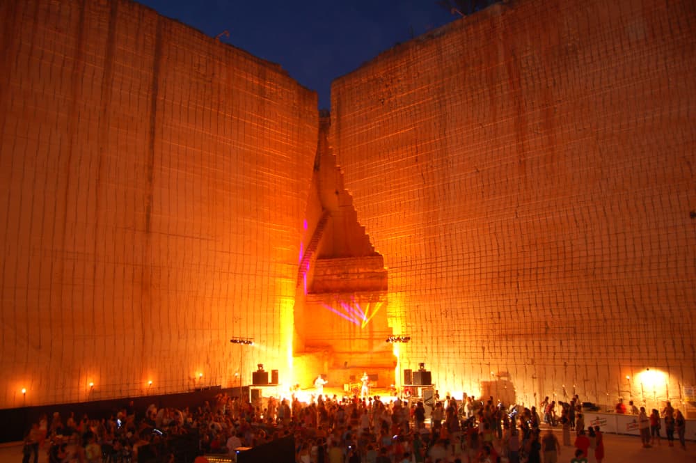La moderna cantera del anfiteatro se excavo junto una antigua zona de extracción manual y el resultado fue la creación de una espectacular forma de conexión.