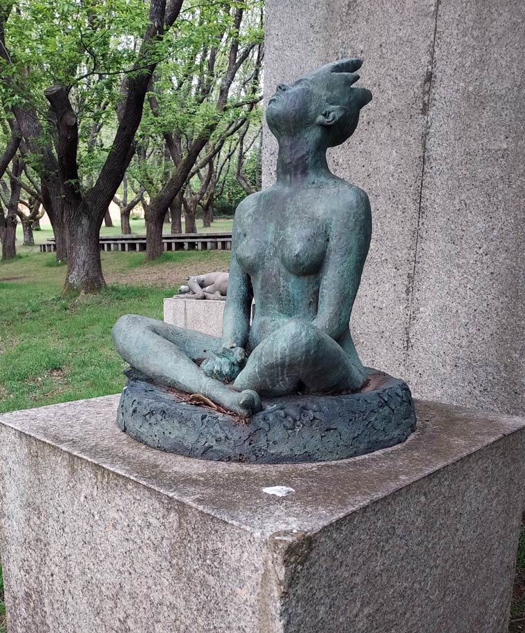 La escultura de la mesa en el bosque me ha recordado a la escultura Homenaje a Luca Pacioli en el jardín del Museo Chillida.