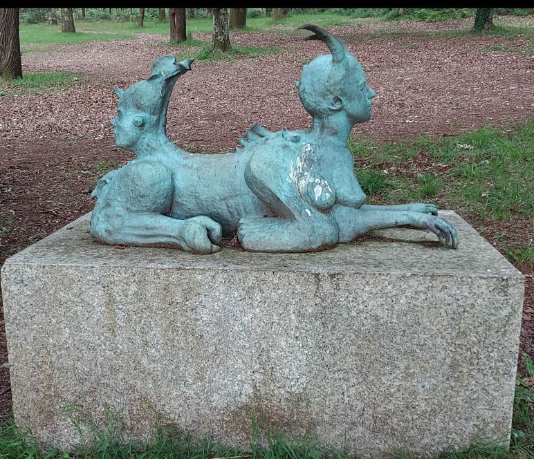 Abstract: In the Rodó forest, among ancient oaks and chestnut trees, a large granite parish table and a sculptural ensemble of strange inanimate characters make up a mysterious landscape that seems to have emerged from a dream.