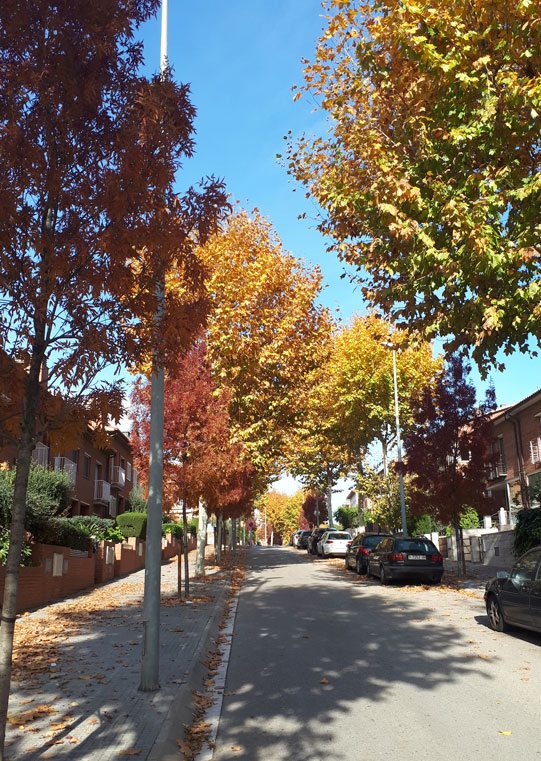 Para conseguir mayor cobertura vegetal, puede resultar adecuado combinar en una misma calle o plaza, árboles de distintas especies y medidas que permitan ir cubriendo el máximo de espacio con las copas, encajándolas como si de un puzzle se tratara.
