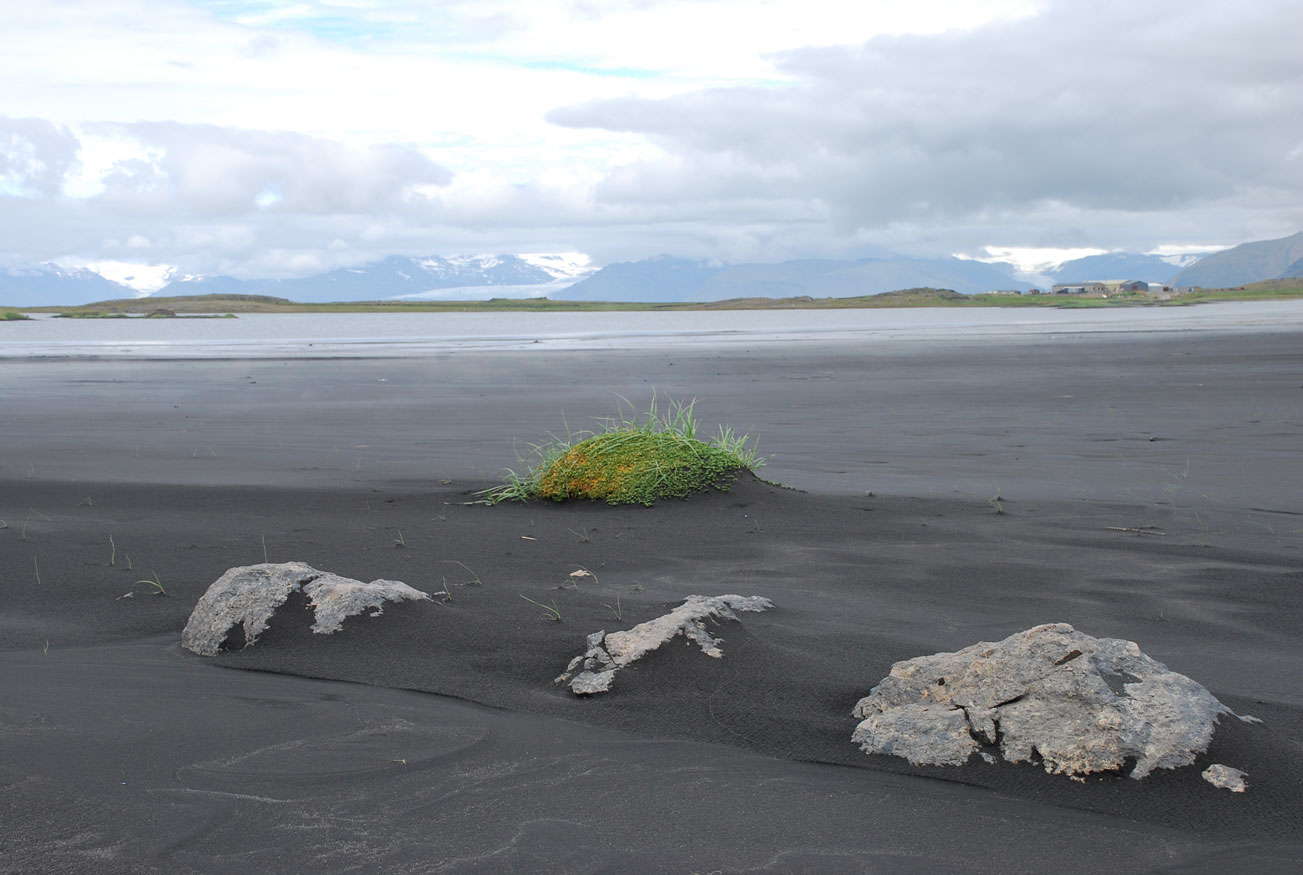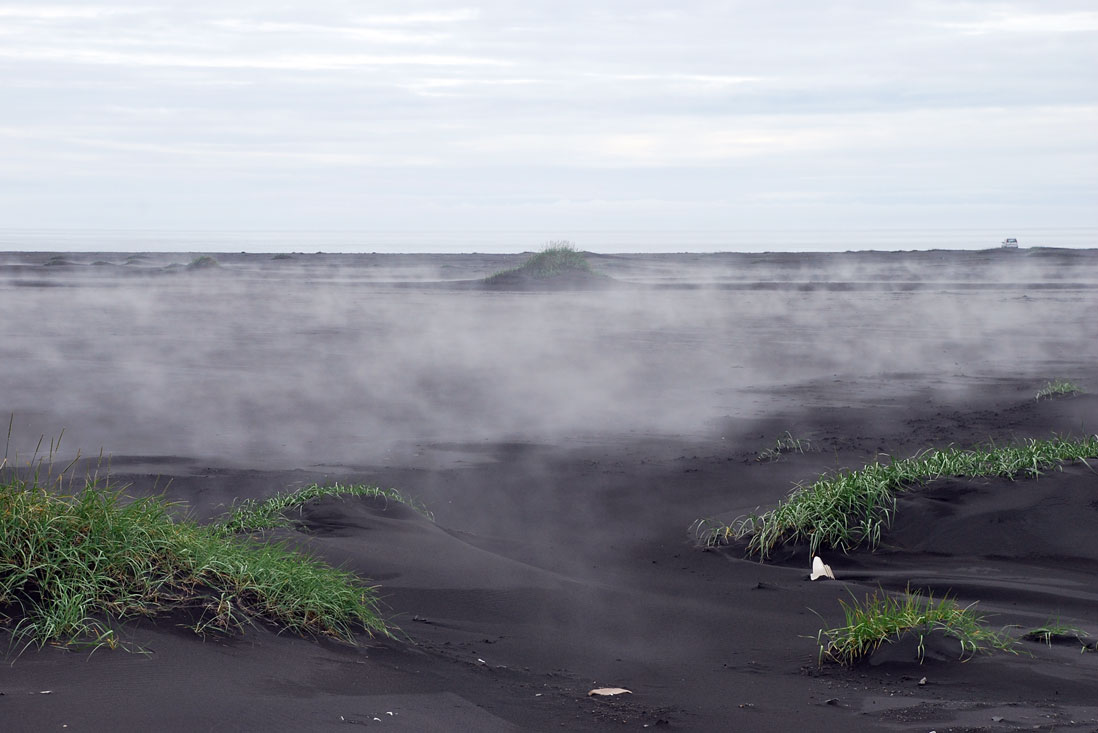 Como telón de fondo, las lenguas heladas del mayor glaciar de Islandia semioculto entre las nubes, dibujan un límite etéreo a la gran llanura costera.