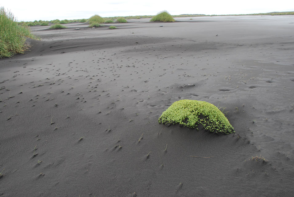 Arena negra salpicada por el verdor de las plantas y alguna piedra cubierta de musgo, se muestran suficientes para crear una belleza sublime e irrepetible.
