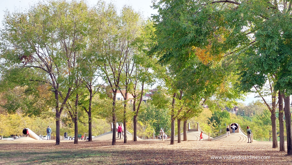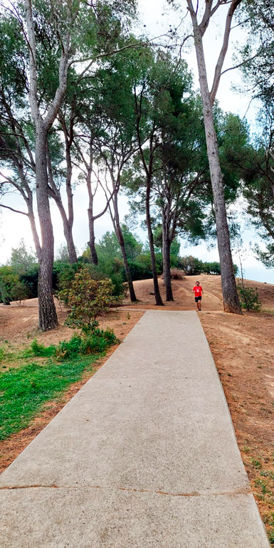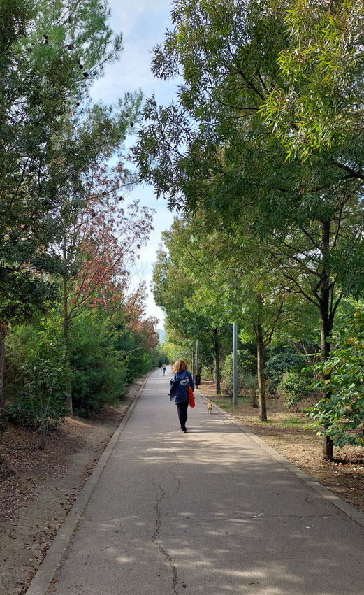 Entre los caminos, distinguimos los recorridos peatonales lineales más urbanos, también la posibilidad de caminar por un anillo perimetral o bien la opción de adentrarse en el parque y perderse por su red interior de senderos y caminos.