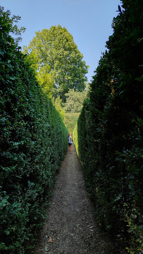 Llegados a ese punto, corresponde adentrarse al interior de un gran laberinto de bojes, algunos de los cuales superan los 4 metros.