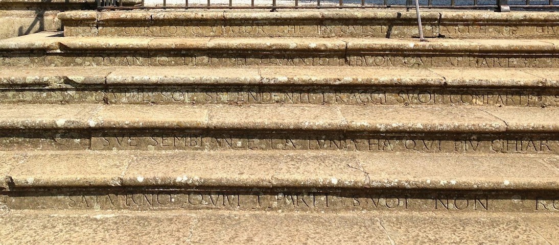 Tras este último paso de purficación, se llega a la Escalera del Soneto , donde unos versos escritos en los peldaños rezan las excelencias del lugar, advirtiendo que: «en Venecia está el infierno y aquí está el Paraíso.«