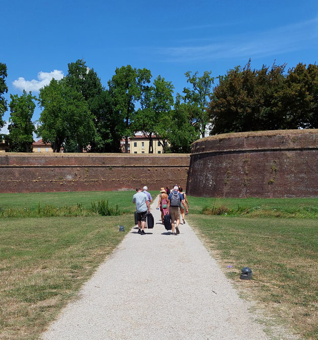Lucca es una pequeña ciudad toscana, rodeada por una gran muralla de origen medieval, ampliada posteriormente los siglos XVI y XVII.