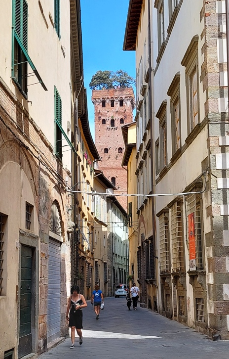 Solamente hace falta pasear por las estrechas calles de Lucca y descubrir como se alza la torre resaltada por la cubierta arbolada, para comprender como simboliza el enorme poder sus propietarios.